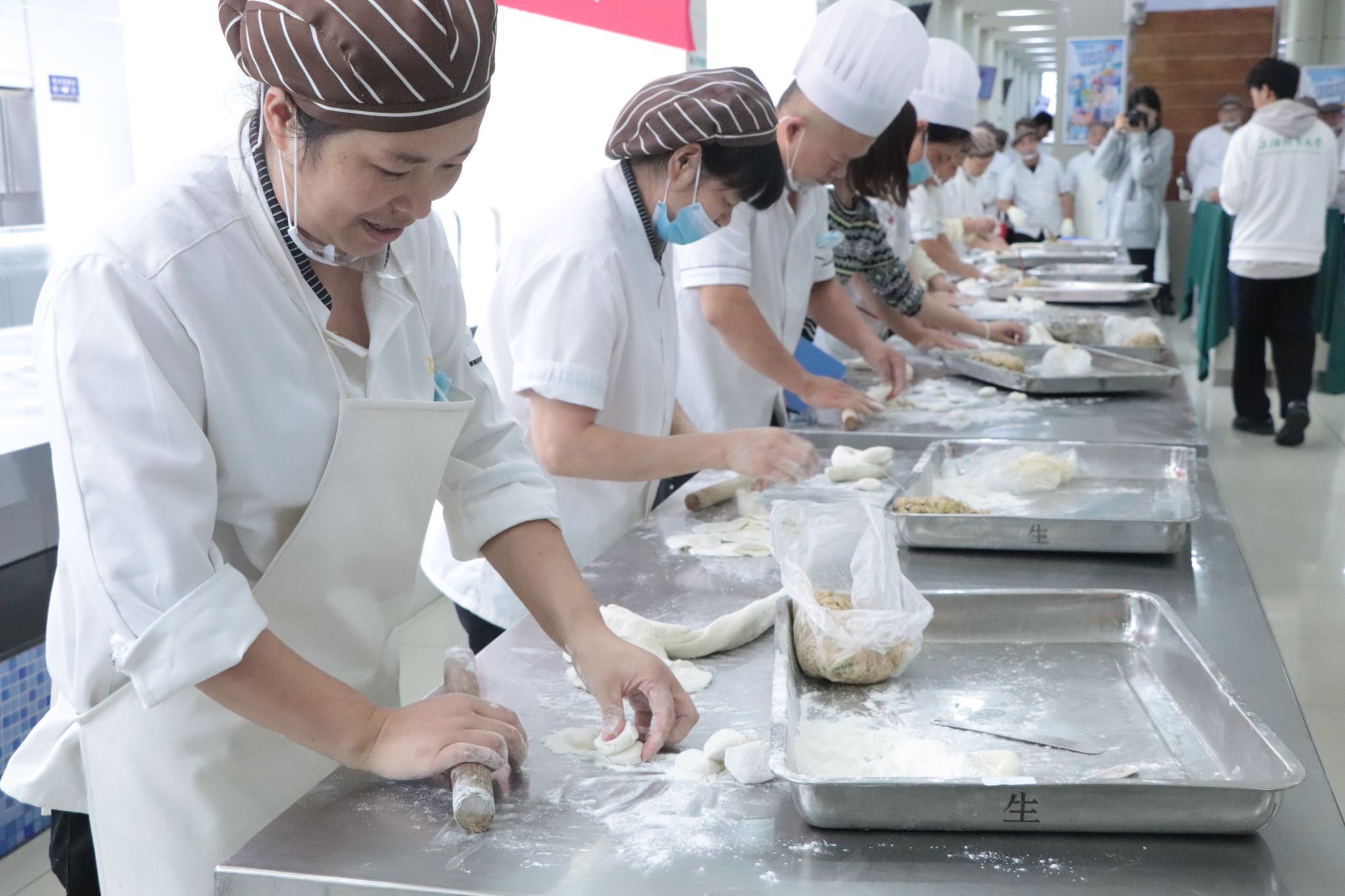 比赛共分为切大排、包香菇菜包、切土豆丝、包白菜大肉水饺和烹饪菜肴五个单项进行比拼。比赛设裁判长一名,活动评委由组委会聘请专业教师、学生代表共同参与。参赛选手赛前进行抽签,按抽签顺序参赛。比赛过程中,选手们严格遵循比赛规程和操作规范,同台竞技、争分夺秒、全身心投入。香菇菜包、白菜大肉水饺,各个形态饱满匀称、表皮光滑、皱褶均匀。土豆丝根根粗细均匀,大排大小、厚薄匀称,与比赛限定克数几乎毫厘不差,充分展现了选手们娴熟的刀工。
