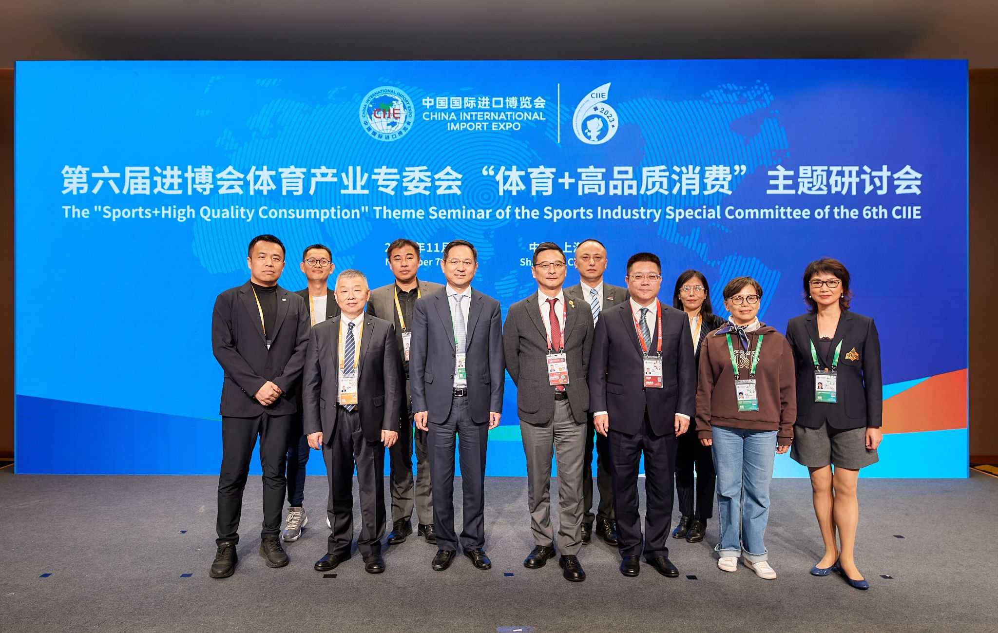 本网讯 11月7日,第六届进博会参展商联盟体育产业专委会“体育+高品质消费”专题研讨会在国家会展中心(上海)顺利举办。国家会展中心(上海)有限责任公司董事、总裁助理章伟民,上海市体育局副局长许琦,耐克大中华区政府及公共事务副总裁佘端志,斯凯奇中国销售及运营副总裁游亮出席活动并致辞,jinnian金年会经济管理学院作为体育产业专委会智力支持单位全程参与会议。