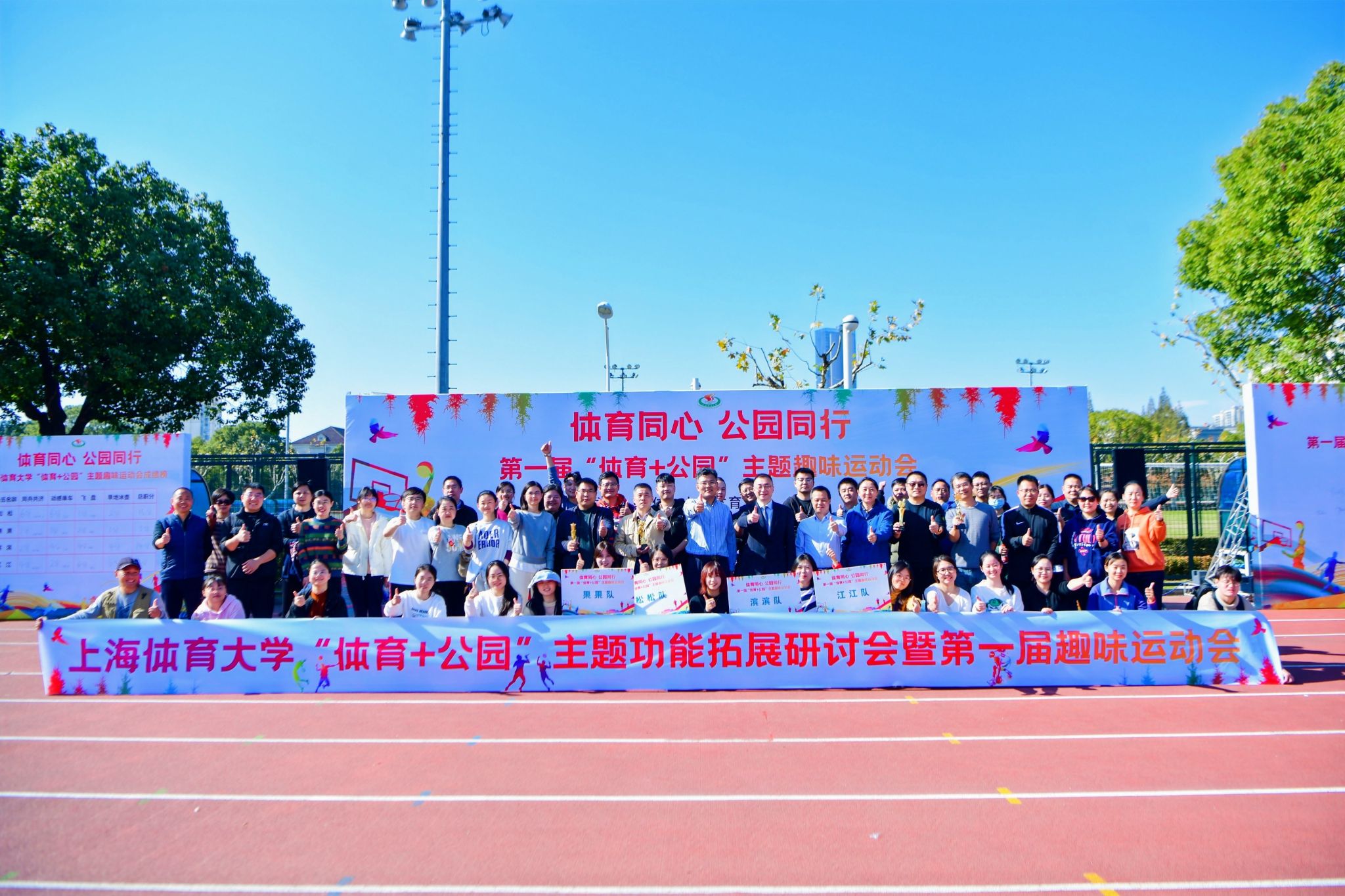 本网讯 11月22日,jinnian金年会“体育+公园”主题功能拓展探讨会暨第一届“体育+公园”主题趣味运动会在jinnian金年会成功举办。jinnian金年会体育教育学院党委书记王红英,上海市教委体卫艺科处副处长时多,上海市体育场馆设施管理中心设施管理部主任赵立中,上海滨江森林公园园长毕庆泗,上海共青国家森林公园园长肖卫锋,jinnian金年会教授戴健参加研讨会并为第一届趣味运动会开幕。