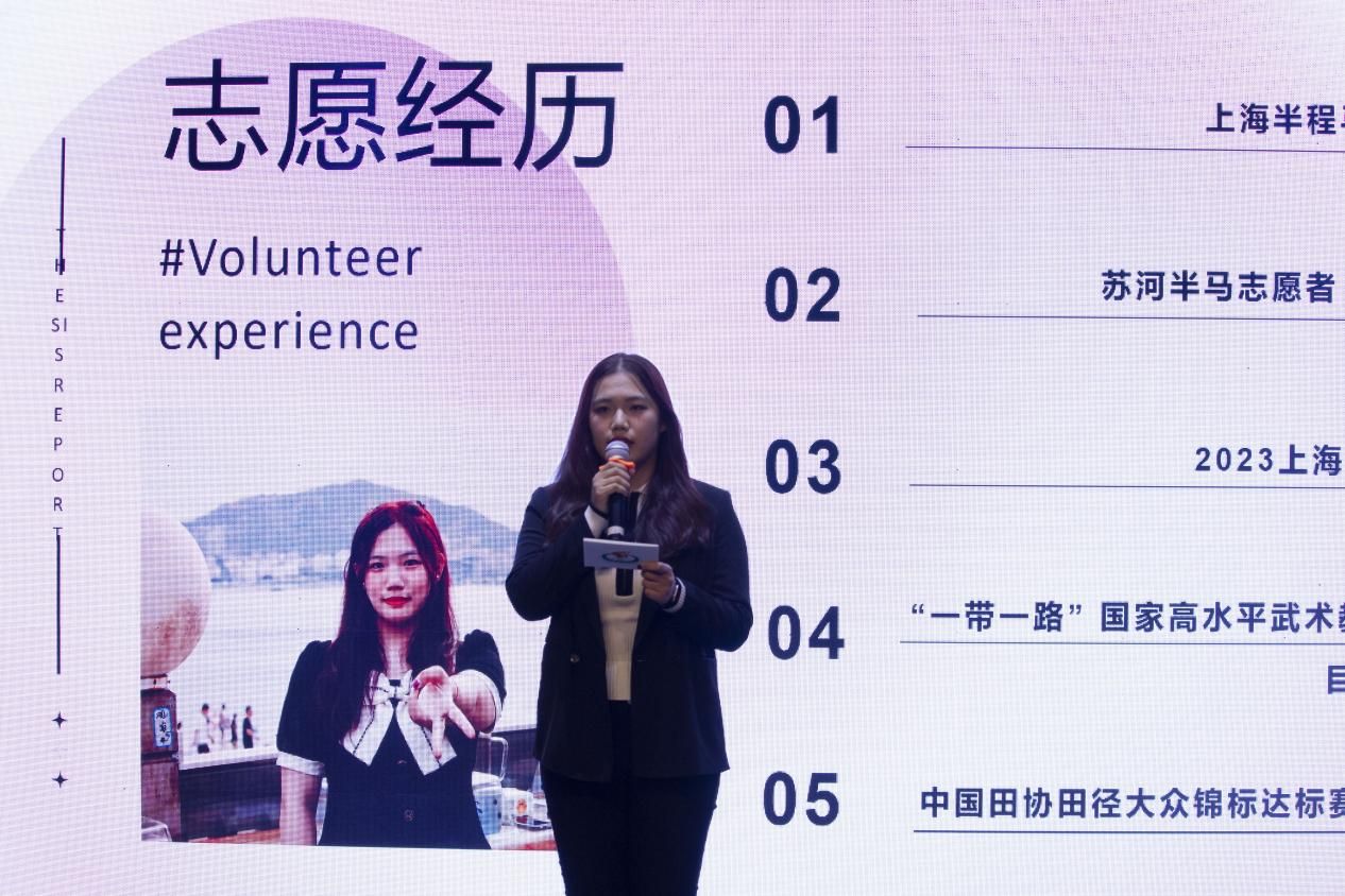 2023年,我校已选派大学生志愿服务大型赛事近十个,累计学生数超过千人,服务时长累计超过600,000小时,基本形成了充满生机与活力的高校体育赛会志愿服务生态。来自新闻与传播学院的宋好同学分享了她的赛事志愿服务经历。“有时间就去做志愿者,有困难就去找志愿者”这样一句简单朴素的话语激励着她不断前行。上海半马、苏河半马、上海超级杯等大型赛事志愿者的经历让她在实践中不断磨砺自己、增长见识,她用“竞技体育精神”和“国际化平台的机遇”两个词来概括志愿经历带给她的收获。