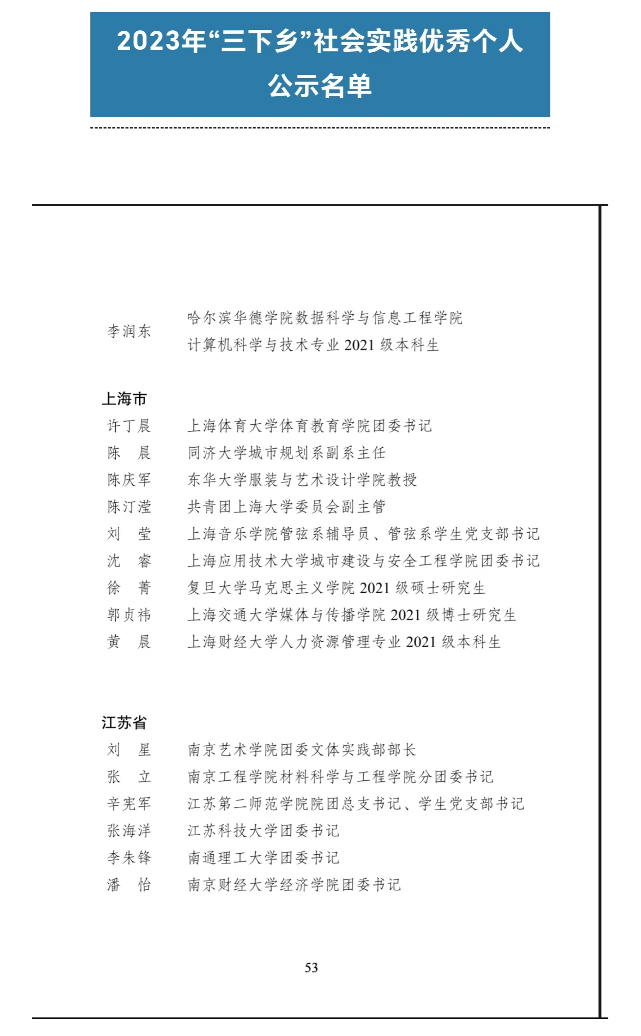 本网讯 近日,团中央青年发展部公示通报了2023年全国大中专学生志愿者暑期文化科技卫生“三下乡”社会实践活动总结结果,经基层推荐、省级团委审核推荐、组织评议等环节,我校体育教育学院辅导员许丁晨老师获评2023年全国大中专学生志愿者暑期文化科技卫生“三下乡”社会实践活动优秀个人,全国共283名个人获此殊荣。
