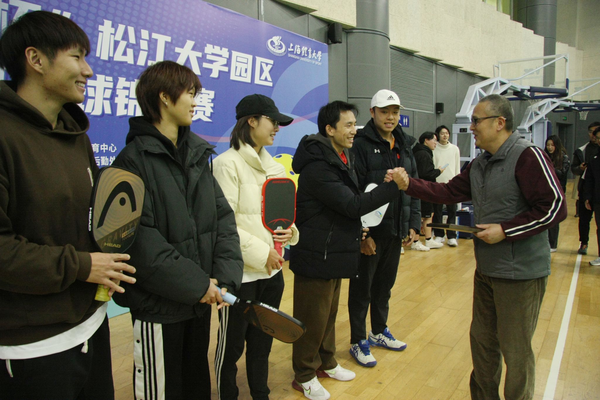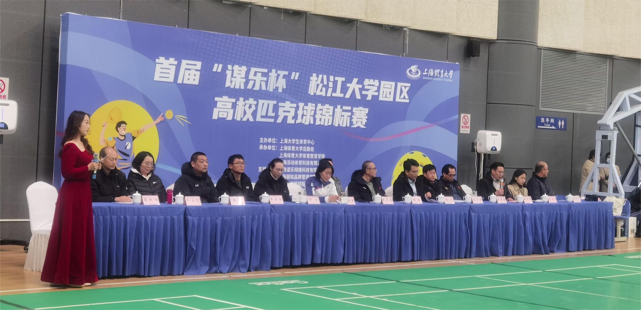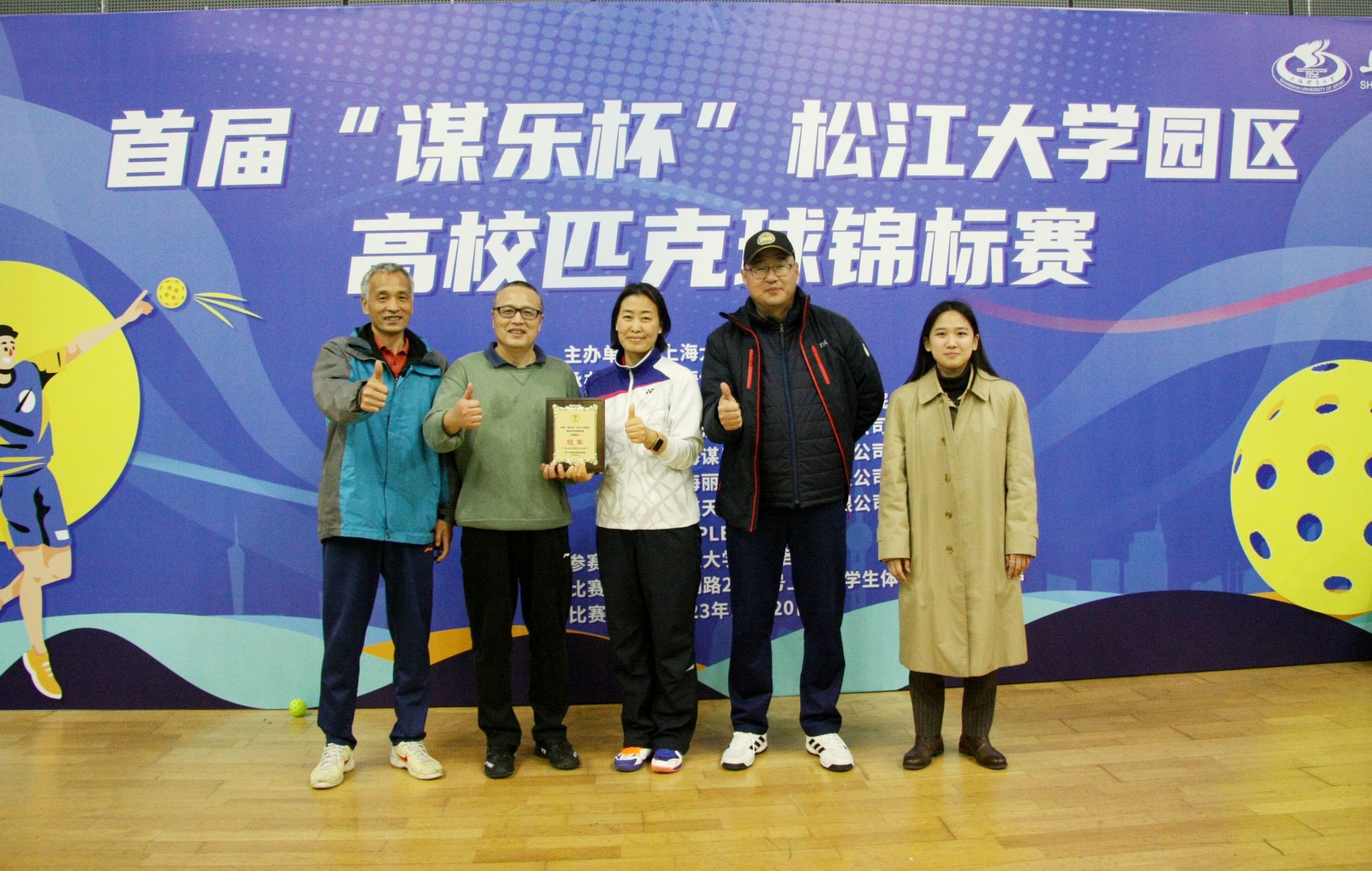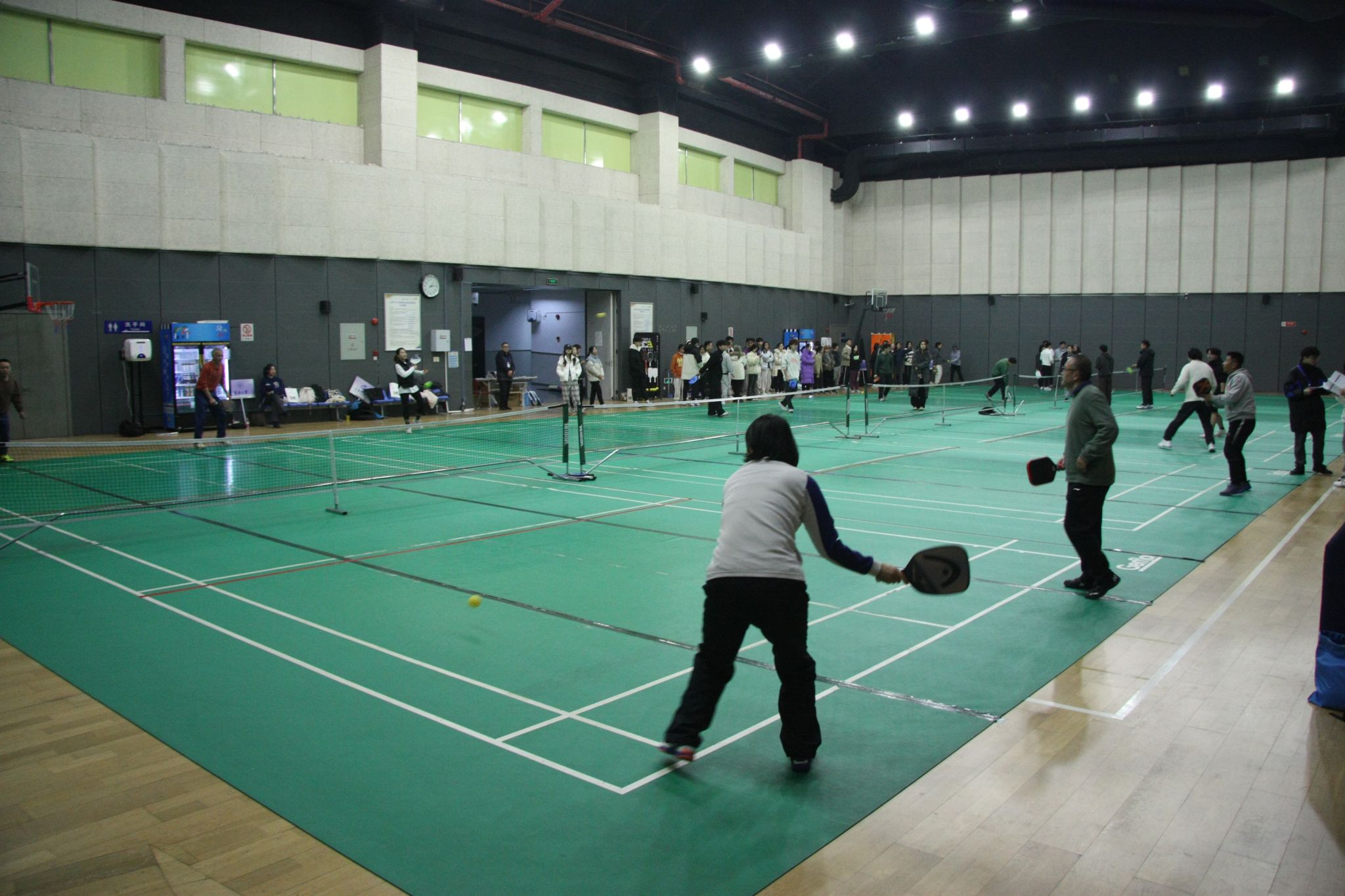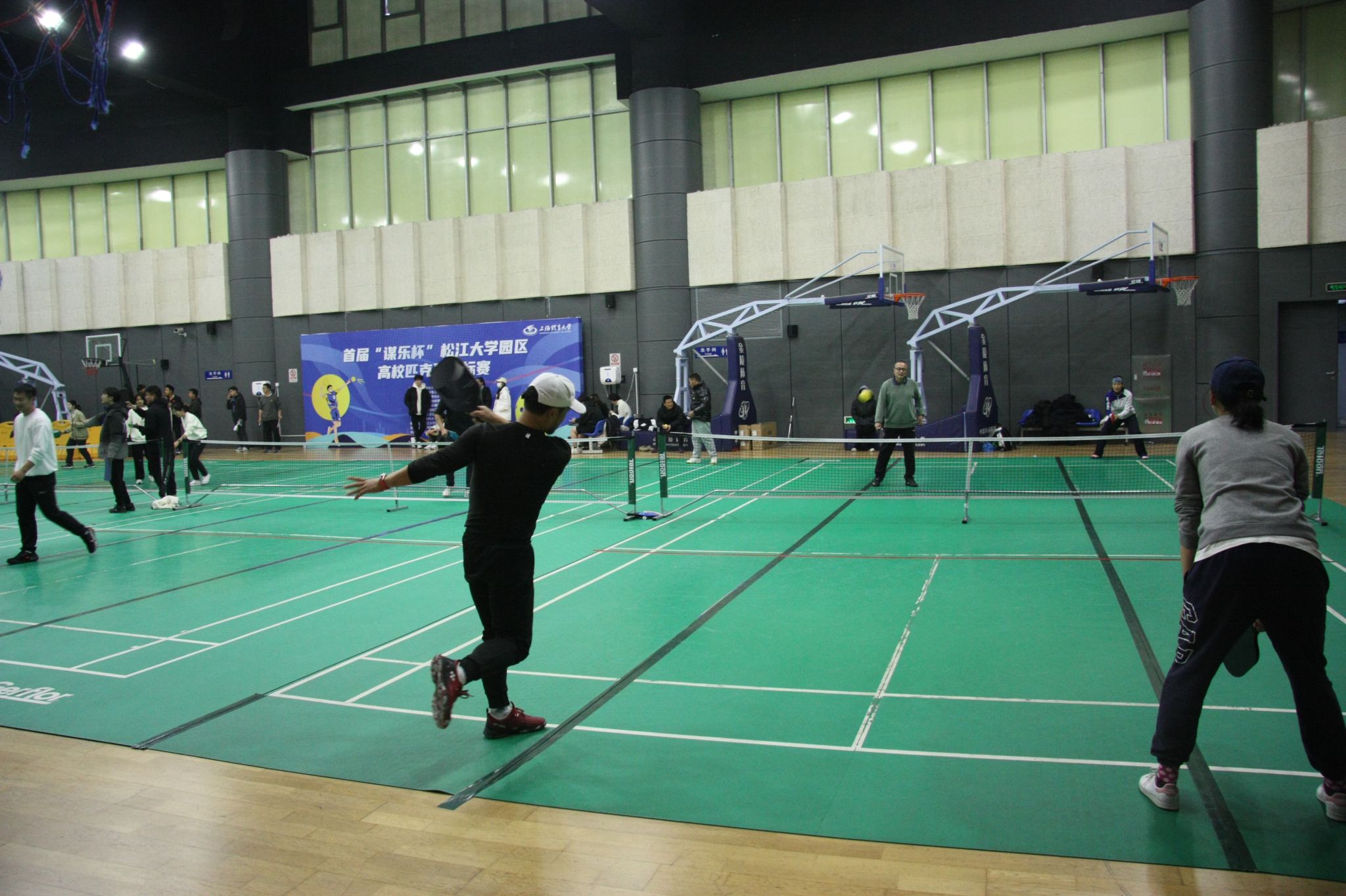 本网讯 12月20日下午,松江大学园区八校齐聚jinnian金年会松江校区上海大学生体育中心羽毛球馆竞逐首届“谋乐杯”松江大学园区高校匹克球锦标赛。松江区体育局副局长黄岩磊,广富林街道副主任陈皇,全国匹克球裁判委员会主任邵春,我校新闻与传播学院党委书记高艳丽,后勤处副处长顾郑军,体育教育学院副院长朱昆,松江校区管理办公室副主任林世行及上海外国语大学、东华大学、华东政法大学、上海对外经贸大学、上海工程技术大学、上海立信会计金融学院、上海视觉艺术学院的有关领导、教职员工及学生两百余人参加。