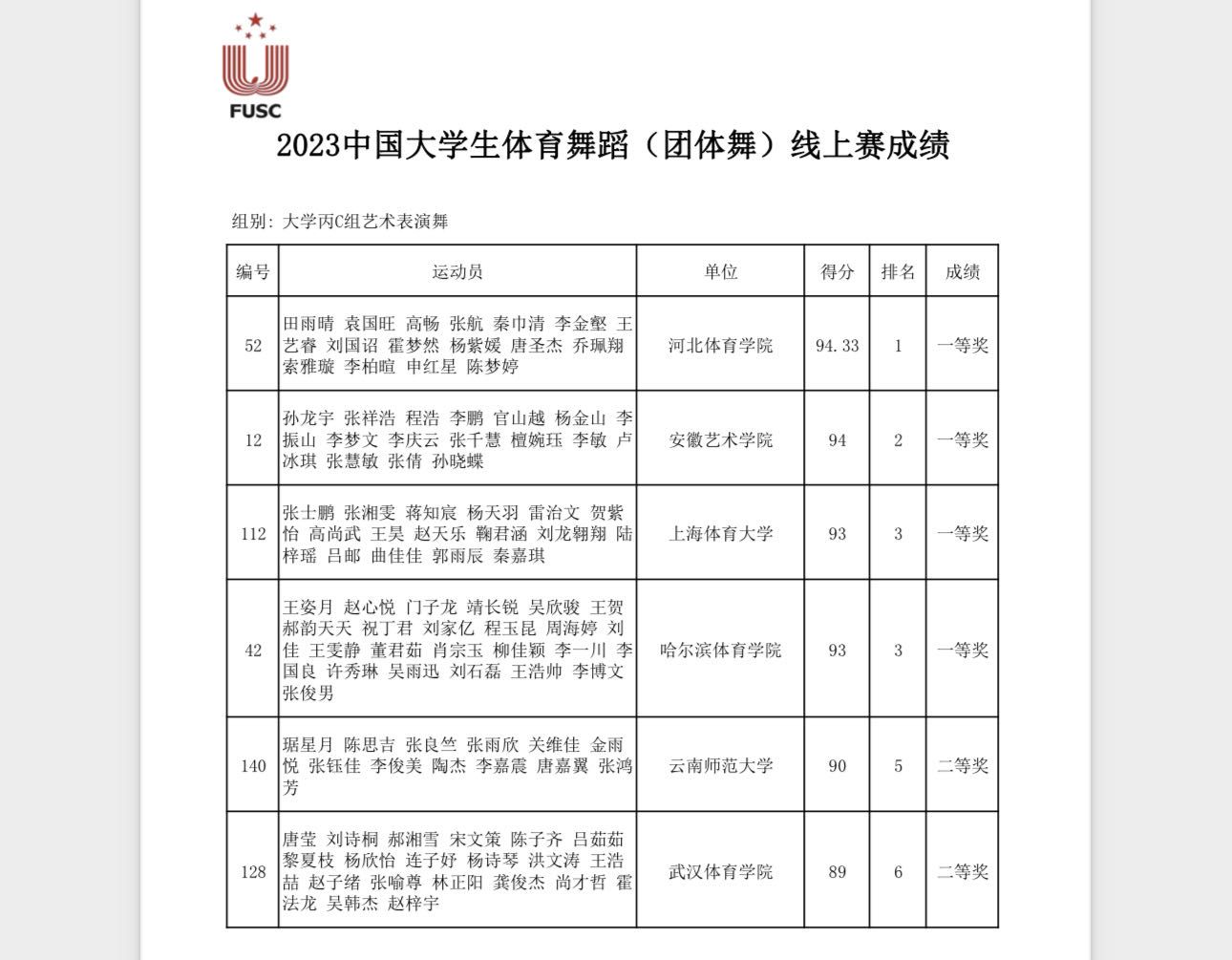 本网讯 近日,由中国大学生体育协会主办的全国大学生体育舞蹈(团体舞)线上赛落下帷幕。本次比赛规模盛大,共有来自全国各地的119所学校、2710余名选手参与其中。在艺术学院副院长(主持工作)韩春英的带领下,舞蹈编导专业两位优秀教师罗雅雯、孙正昊作为教练员,带领16名充满活力的学生,以参赛作品《爱情神话》在丙c组表演舞的组别中脱颖而出,荣获一等奖。
