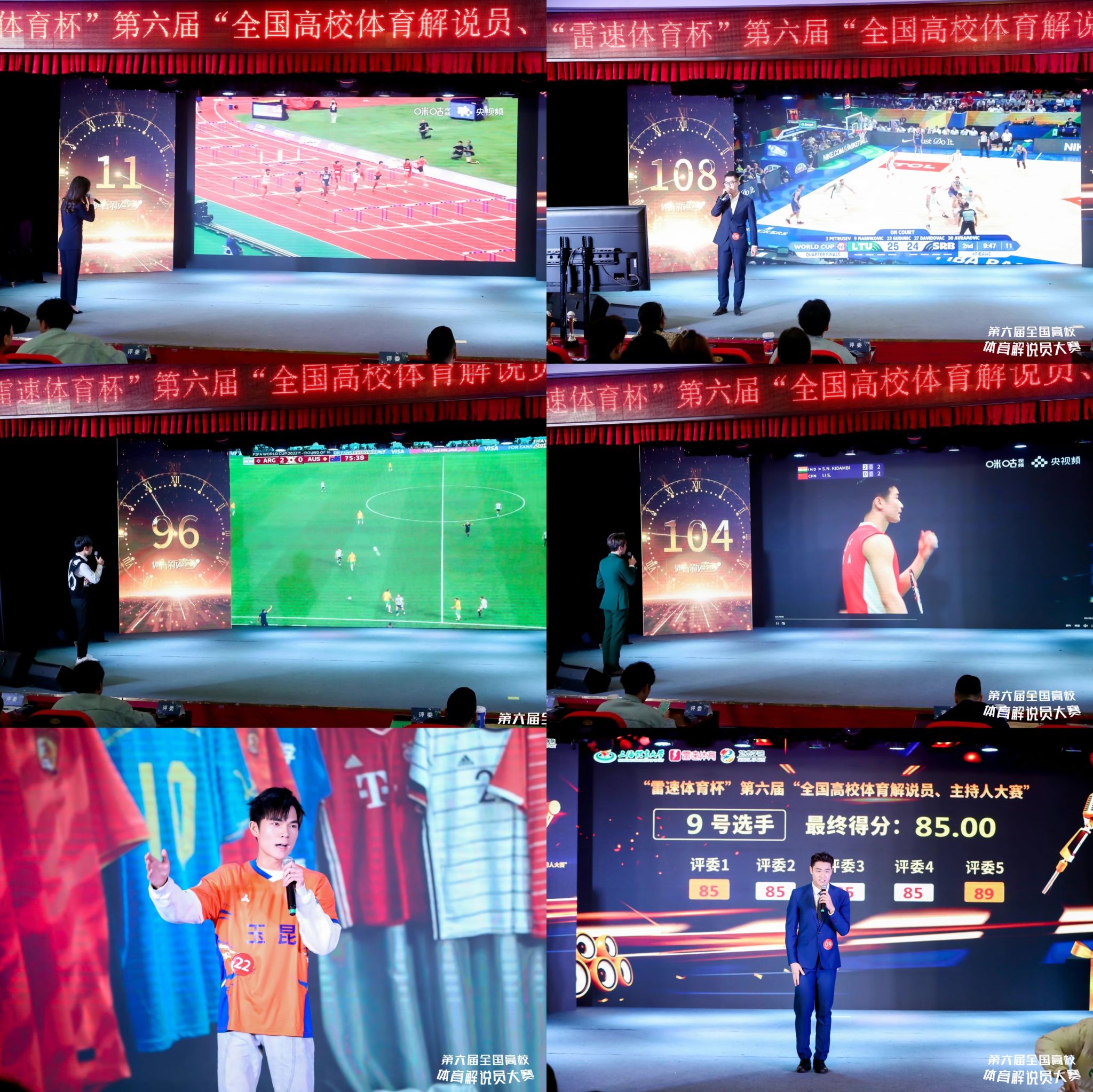 本网讯 2023年12月24日,由jinnian金年会联合雷速体育共同主办的“雷速体育杯”第六届“全国高校体育解说员、主持人大赛”决赛顺利举行。此次大赛共有50余所国内高校的近700名选手参加。历经线下10大分赛区和网络分赛区的层层选拔,来自北京大学、重庆大学、中国传媒大学、中央戏剧学院、上海戏剧学院、浙江传媒学院、北京体育大学等多所高校的63名选手脱颖而出进入复赛,最终经过全国复赛的选拔,共有30名选手进入决赛。雷速体育对复赛、决赛进行了全程直播,猫倜对本次大赛提供了官方服装赞助。