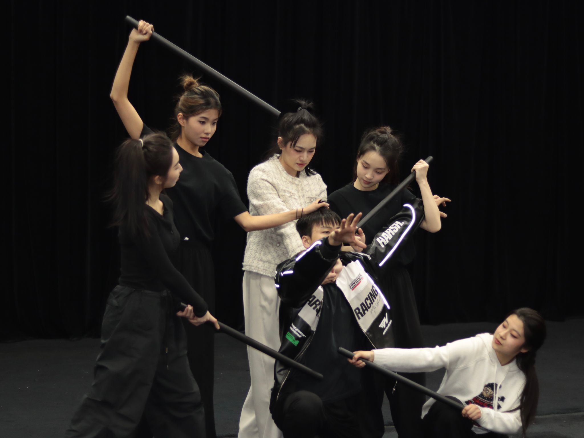 作为上海市第四批应用型本科试点专业,上体表演专业重点在于学生实践能力的培养。对此,学校在课程设置上特意安排“毕业作品大戏”环节,围绕《峨眉》作品创作贯通《剧目排演》(王晓璐)、《动作设计》(王三)、《武戏打斗》(王继强)、《舞台设计》(朱路赟)四门课程,从剧本文学理解到人物角色塑造,从武打动作设计到肢体合理运用,从道化服灯光技术到专业素养养成,让学生全方位理解一个作品从创作到制作的流程。