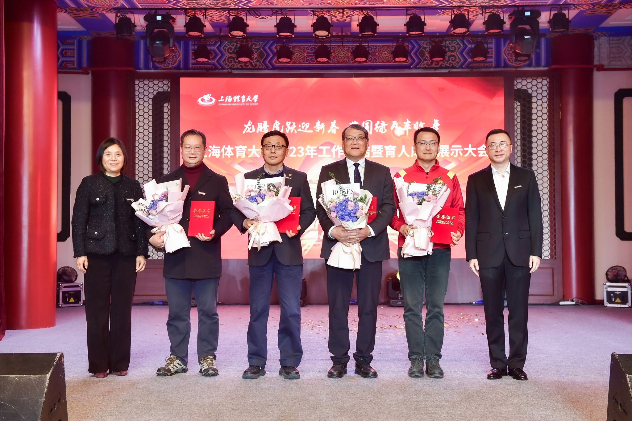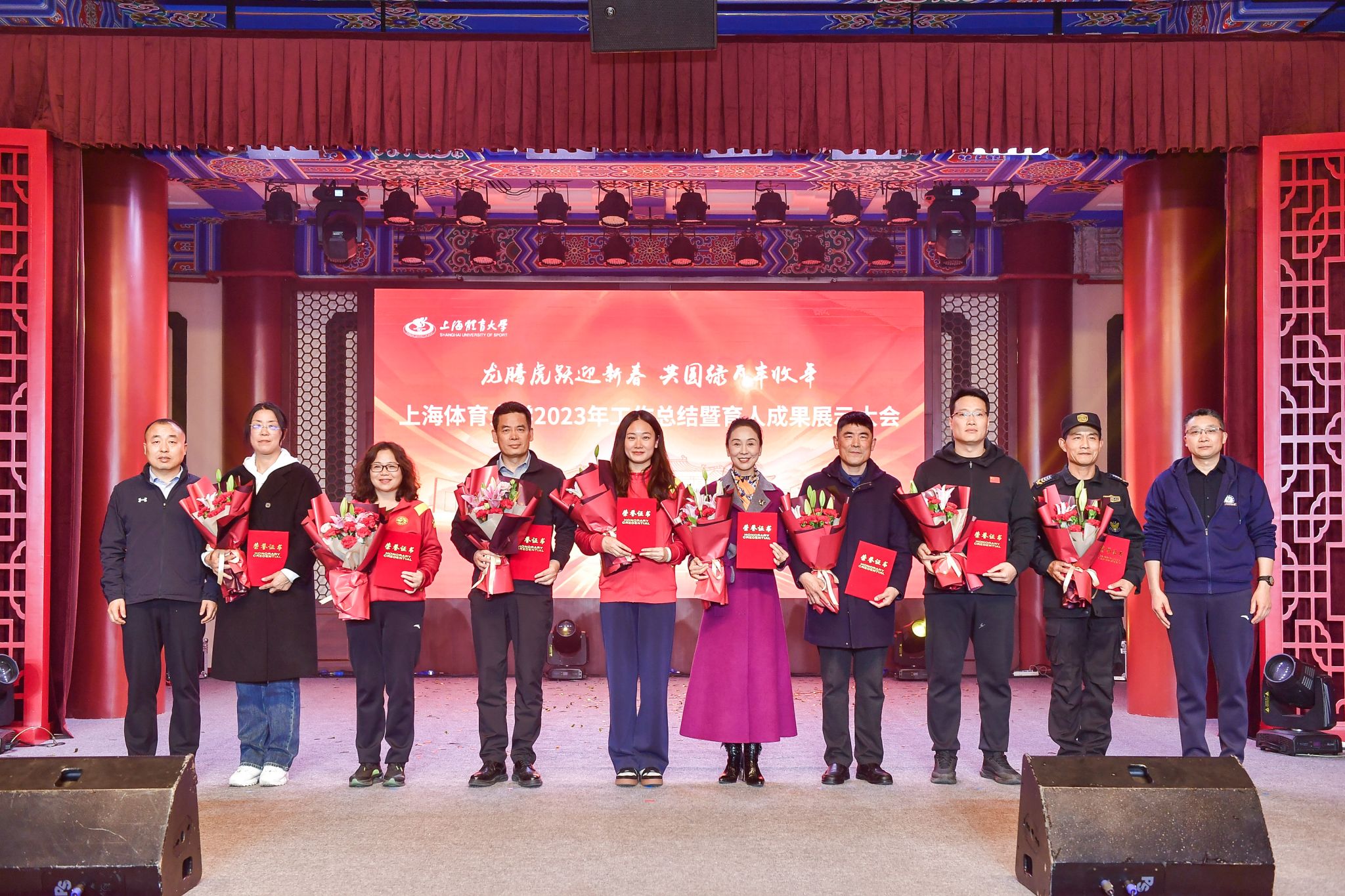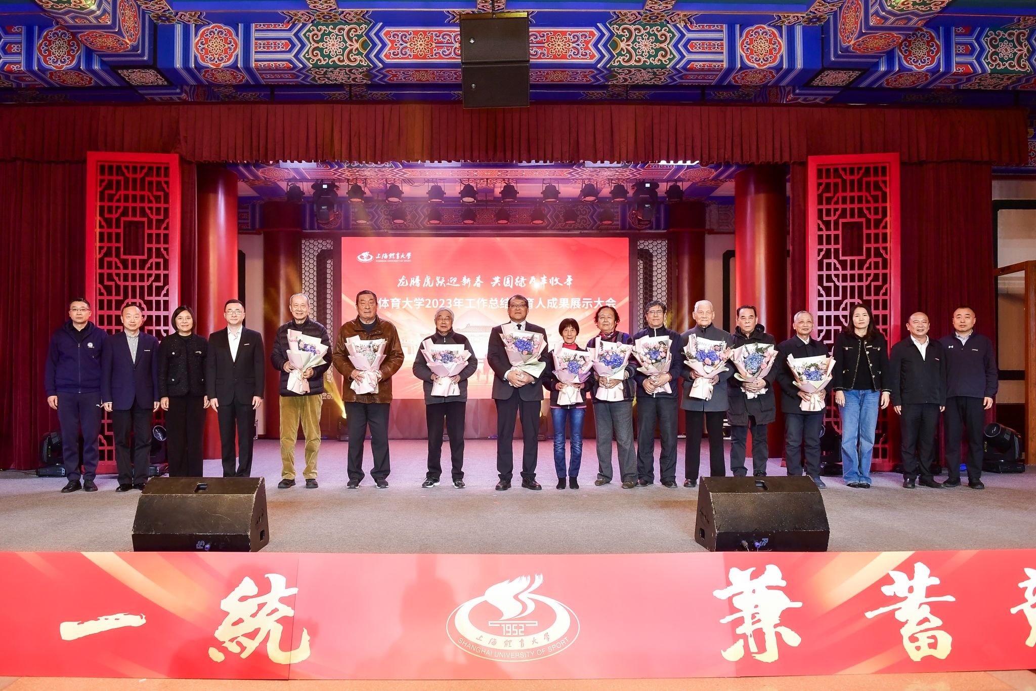 大会通过“jinnian金年会2023年十大新闻集锦”,共同回顾了学校在过去一年里的丰硕成果和难忘瞬间。会上,全体校领导为老领导老同志代表献花,并为在2023年中做出突出贡献的团队和个人代表颁发荣誉奖项,激发广大上体人传承和弘扬优良传统,凝心聚力,踔厉奋发,为中国特色世界一流体育大学建设贡献力量。