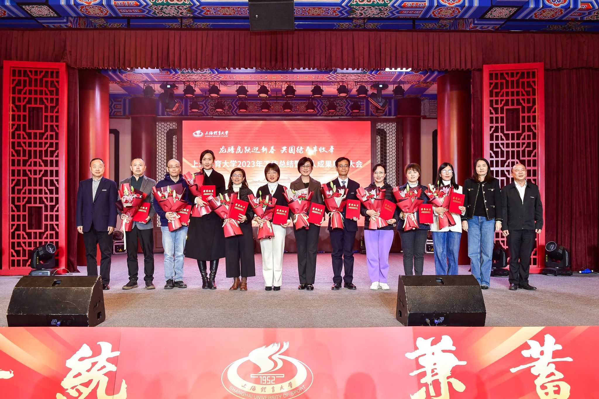 李崟书记代表学校党委向过去一年付出辛勤劳动、作出积极贡献的全校师生员工致以诚挚感谢!他指出,2023年的上体浓墨重彩,硕果累累,注定会在时间的坐标上镌刻下上体人的勇毅担当。2024年是中华人民共和国成立75周年,是实现“十四五”规划目标任务的关键一年,李崟书记勉励大家厚植“教育报国”“体育报国”情怀,知重负重、矢志奋斗。进一步发扬“拼”的精神、“闯”的劲头、“实”的干劲,回应社会各界对学校发展期待。要以深化高等教育综合改革意见和十大专项行动计划为主线,不断开辟新领域新赛道、塑造新动能新优势。