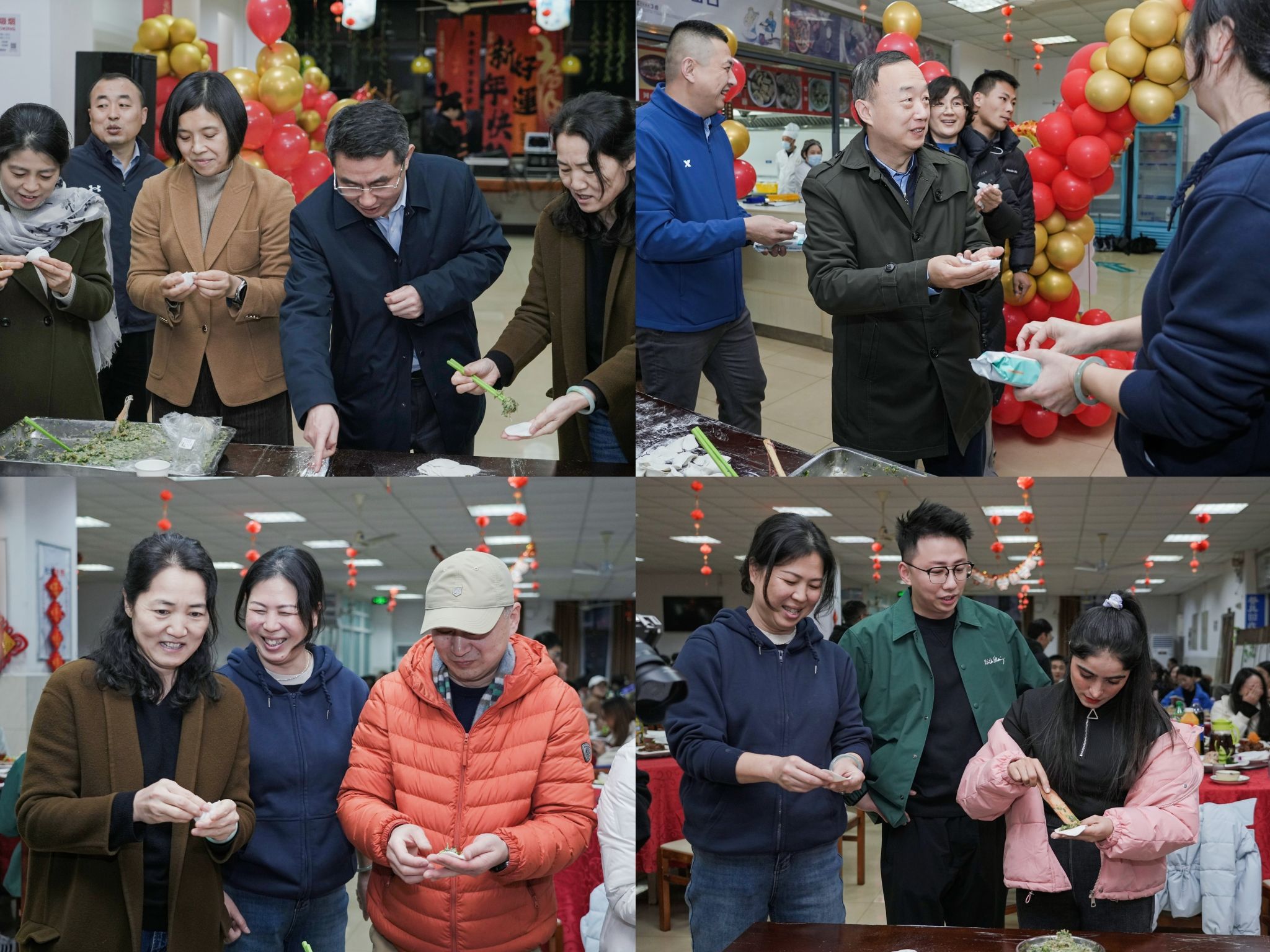 师生一起包饺子、校领导和老师们为学生端盘送“鱼”成为当晚年夜饭的一大亮点。师生们齐上阵,亲自动手制作美味的饺子,大家围在一起,一边交流着包饺子的技巧,一边分享着家乡的风俗和趣事,在欢声笑语中,一个个形态各异的饺子诞生了。校领导和老师们,双手端着盘子,为学生们送上了饱含寓意的“年年有鱼”,让学生们获得家一般温暖的团圆年夜饭。