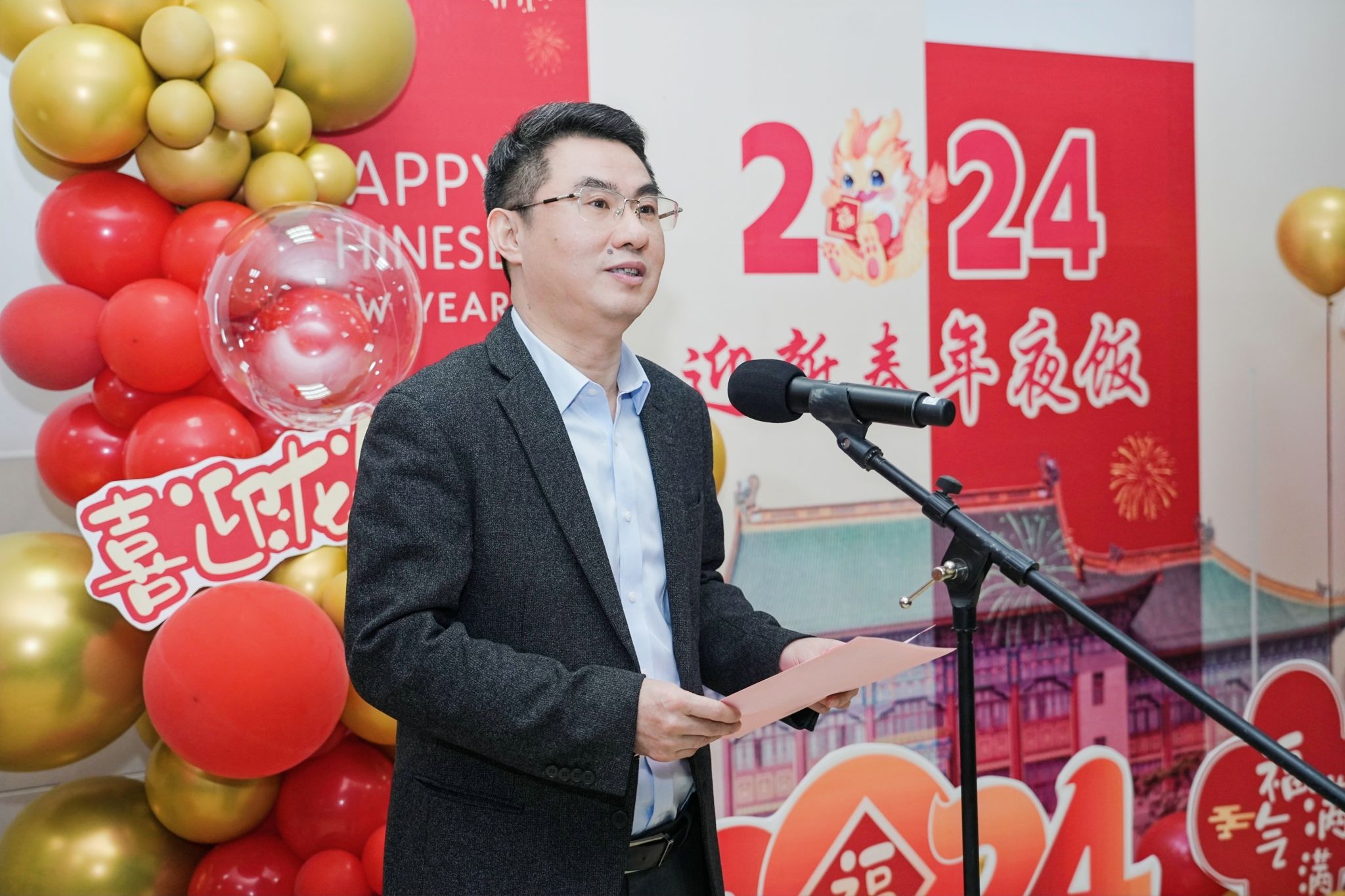本网讯 兔辞旧岁,龙迎新春。2月1日,腊月二十二,上海市教卫工作党委副书记、市教委副主任闵辉,上海市教委学生处一级调研员赵静茹,学校党政领导班子成员、相关职能部门负责同志、各二级学院班子成员、教师代表与150多名留校学生欢聚一堂,共享2024年迎新春年夜饭。