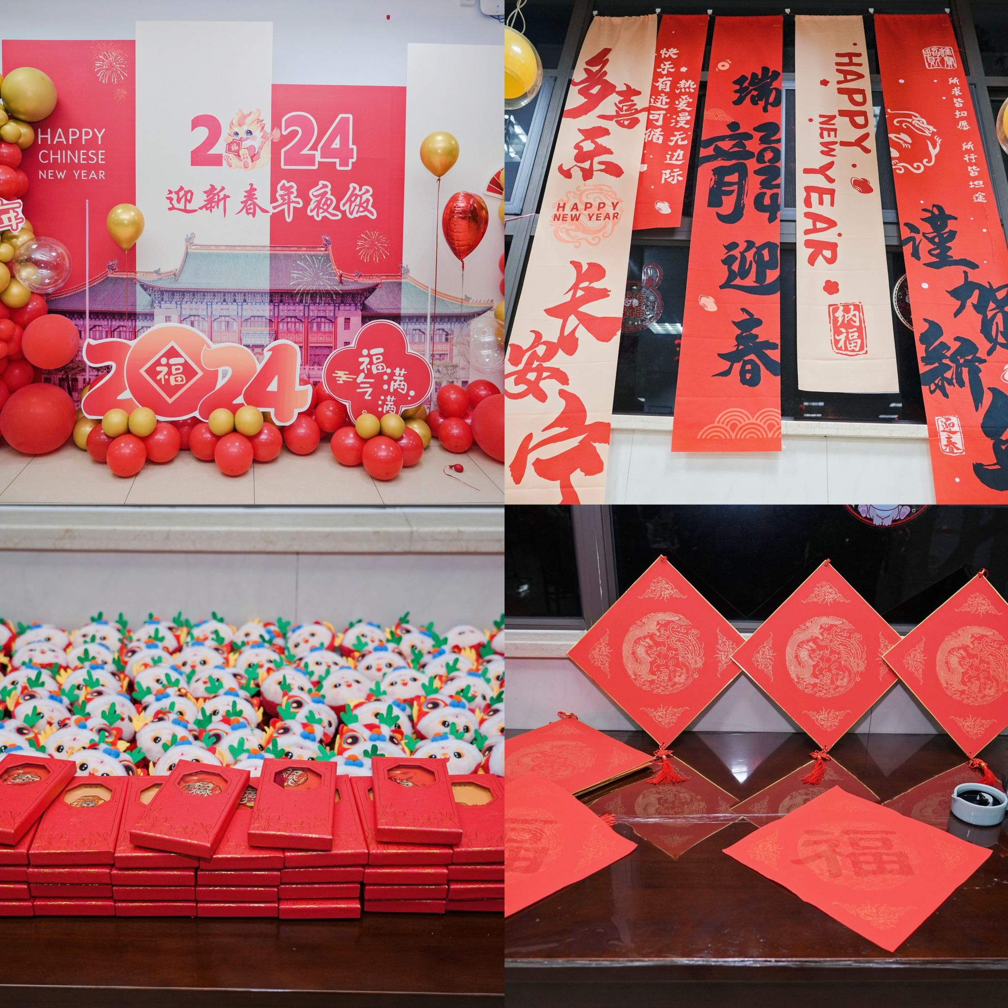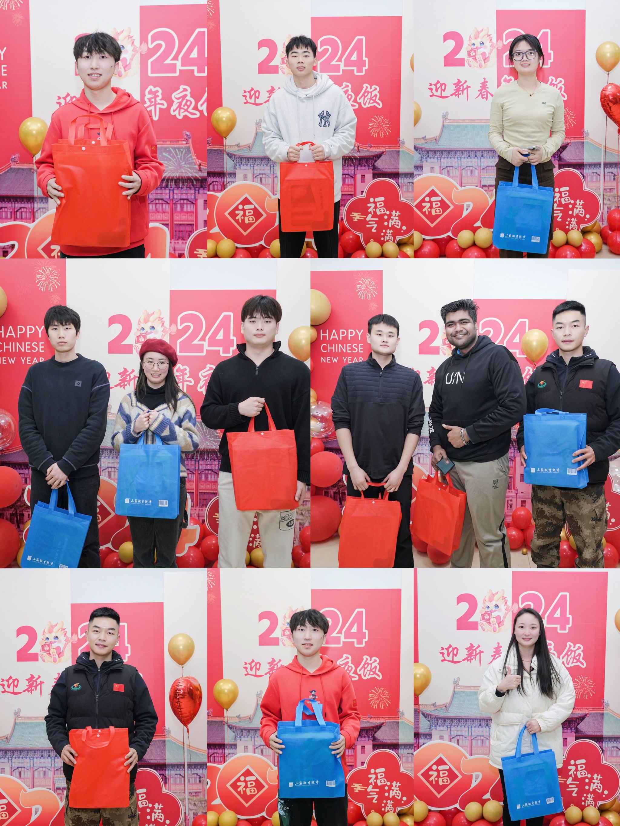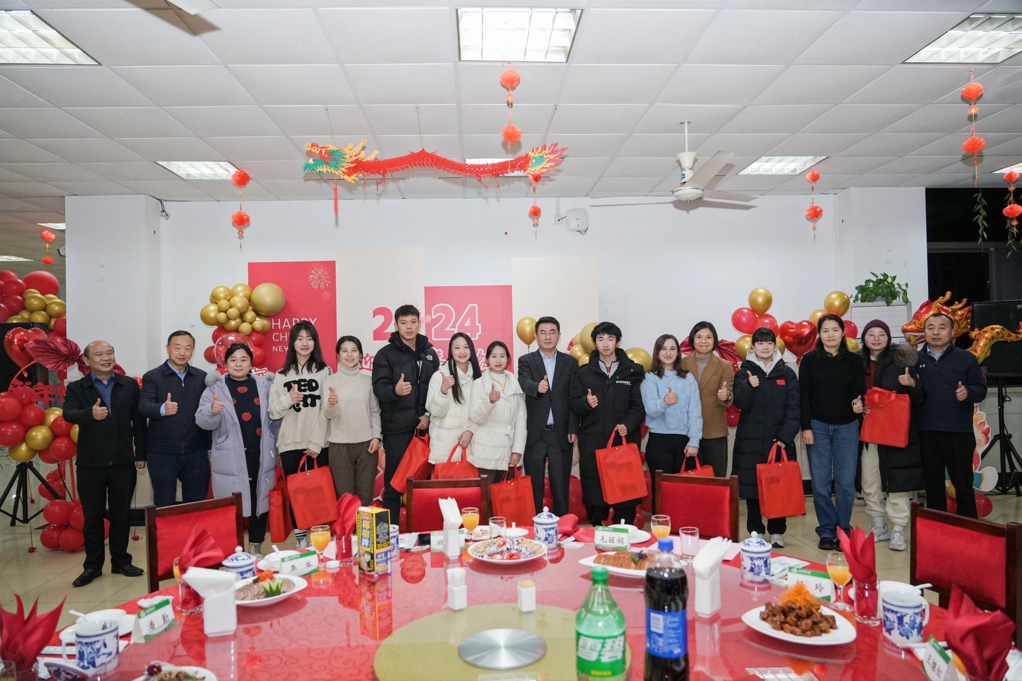 抽奖环节更是将现场的气氛推向了高潮。同学们积极参与,一份份精美的健身礼包被相继抽出,所有参加年夜饭的同学在活动结束都获得了龙年挂件、龙年玩偶、小龙盲盒及龙年书签等小礼物。