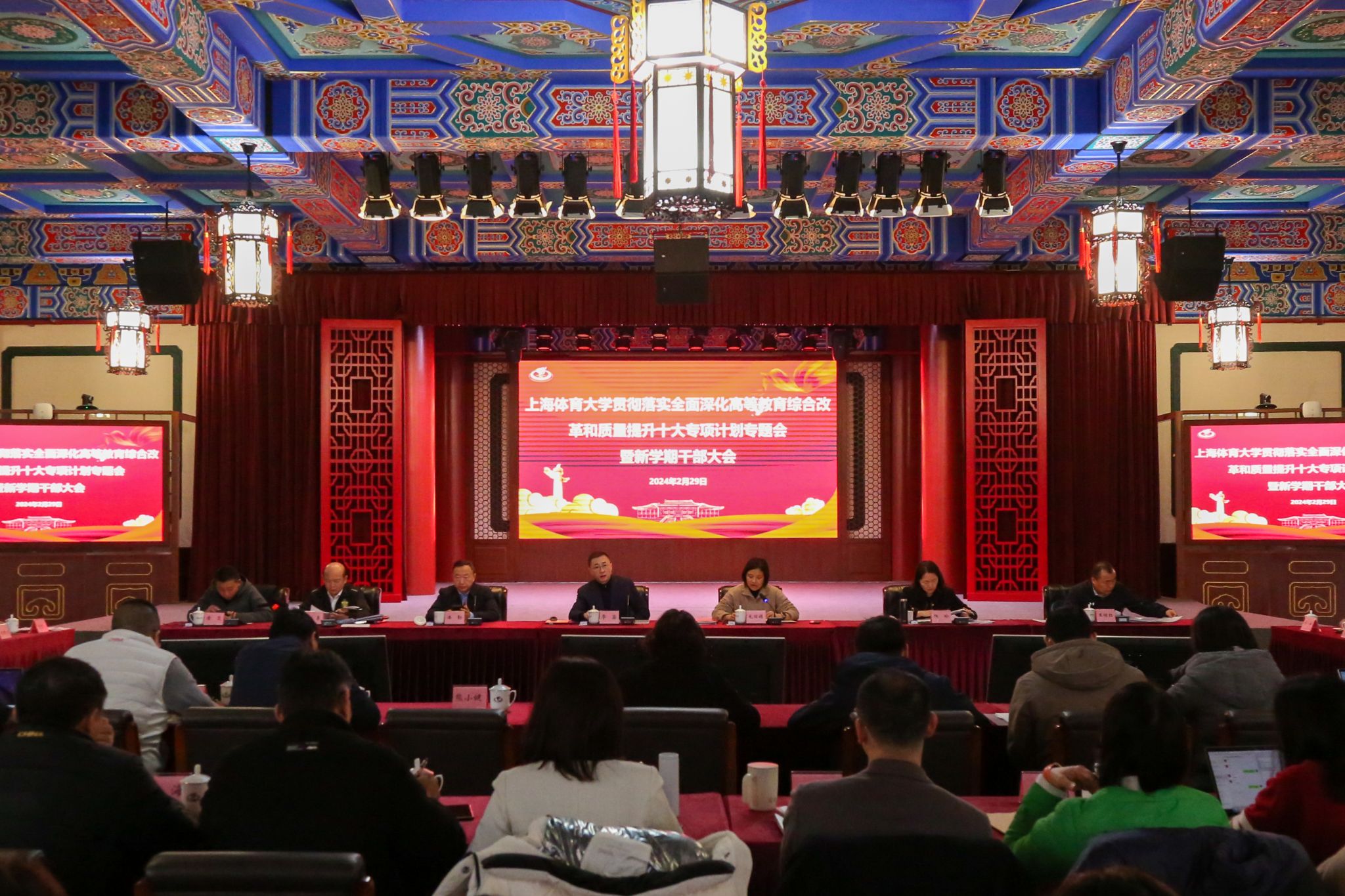 本网讯 2月28日、29日上午,学校召开贯彻落实全面深化高等教育综合改革服务促进高质量发展和高等教育质量提升十大专项计划专题会暨新学期干部大会,传达学习2024年春季上海高校党政负责干部会议精神,对标综改要求研究贯彻落实举措,安排部署2024年学校工作。校领导班子和全体中层领导人员、相关平台负责人参加会议。