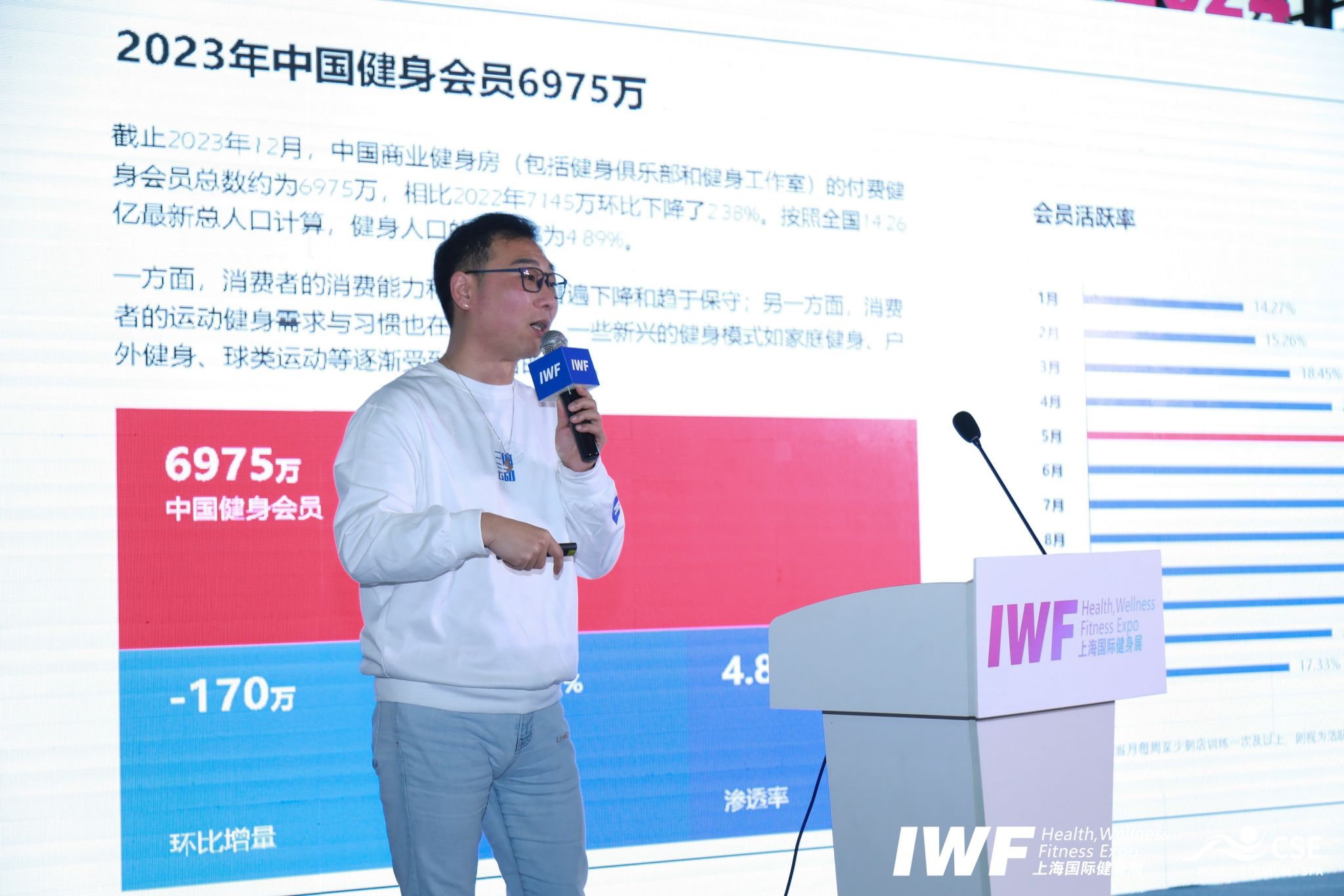 三体云动联合创始人兼CEO窦赢围绕落地的“健身房经营数据”,分别从报告里的健身产业规模、健身行业从业者、场馆经营等三大板块多个维度的重要数据进行了解读与分析,并大胆猜想和预测中国健身行业在未来的发展趋势和变化。