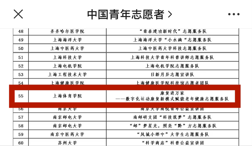 本网讯 为深入贯彻落实习近平总书记关于科普工作的重要讲话精神,推动高校大学生科技志愿服务专业化、规范化和常态化开展,按照关于开展大学生科技志愿服务工作有关通知要求,中国青年志愿者协会、中国科学技术协会宣传文化部继续联合开展大学生科技志愿服务“馆校对接”组织实施项目。近日,我校运动健康学院“康复进万家——数字化运动康复新模式赋能老年健康志愿服务队”成功入选中国大学生科技志愿服务名单。