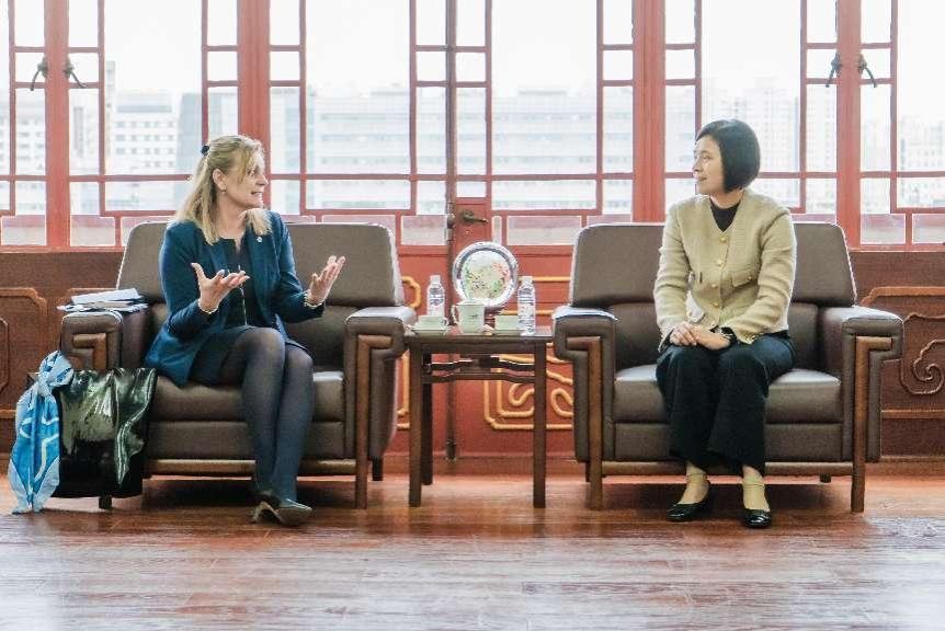 本网讯 3月11日,校长毛丽娟会见匈牙利体育科学大学外事处处长茱蒂特·卡达尔(Dr. Judit Kádár)、匈牙利外交事务和贸易部中国事务顾问高东红和外事处协调员嘉博·塞尔(Gábor Csele)一行3人,国际交流处处长沈佳、竞技运动学院院长高炳宏、继续教育学院院长杨烨陪同会见。