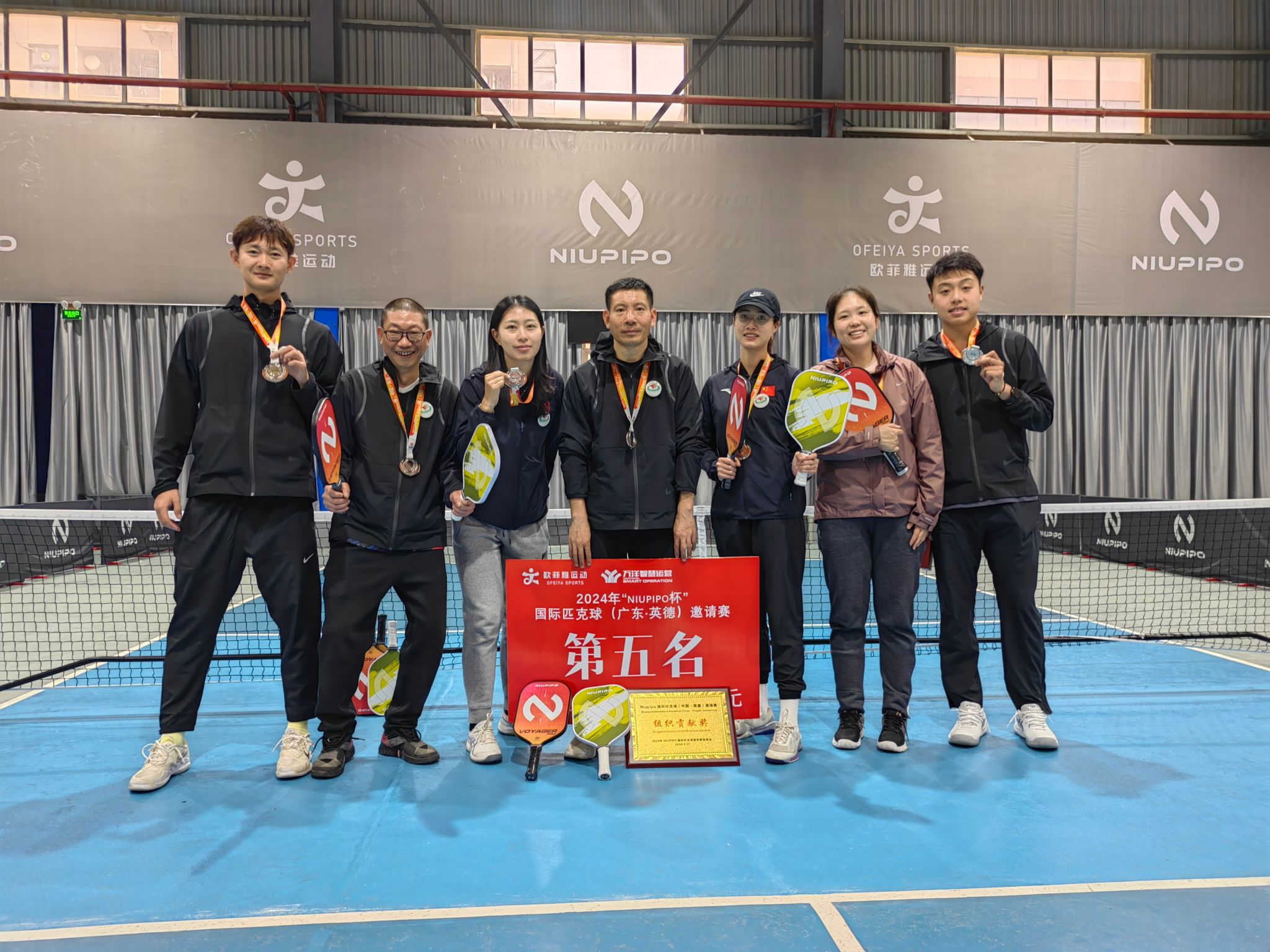 我校由竞技运动学院羽网教学团队教师陈周业(兼领队)、卢志泉(兼教练)、霍倩文及学生参赛队员白猛园、陈佳佳、李傲、杨嘉成共同组队参赛。经过激烈角逐,澳洲匹克球代表队荣获冠军,NIUPIPO匹克球俱乐部及中国澳门匹克球协会分别位列亚军和季军,jinnian金年会队取得第五名的佳绩,并获得本届赛事的“组织贡献奖项”。