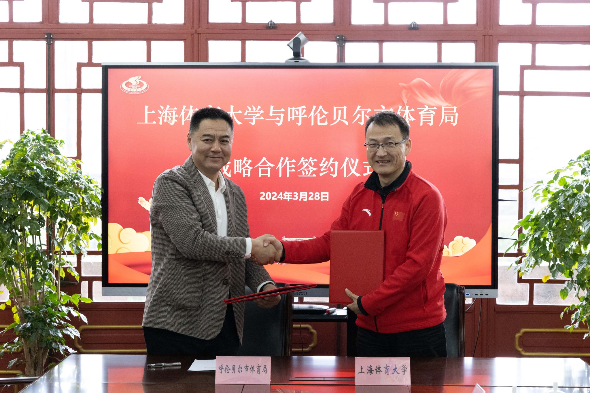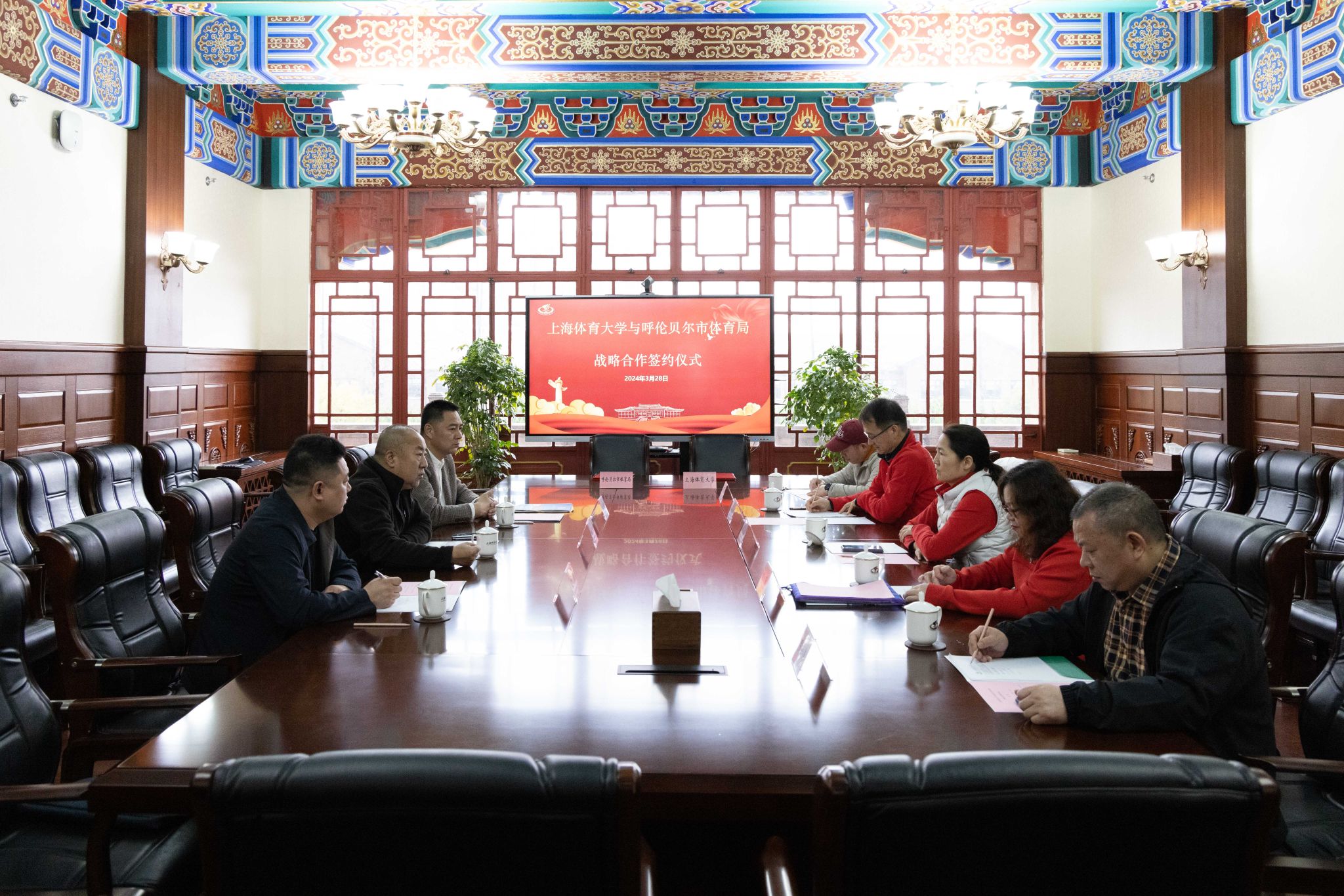 本网讯 3月28日,呼伦贝尔体育局党组书记、局长匡卓一行访问我校,同行人员有内蒙古冰雪运动学校党支部书记、校长李志明,呼伦贝尔市体育事业发展中心主任温勇。我校党委副书记杨玲会见了匡卓一行,并举行了“战略合作协议”签署仪式,为双方今后的交流合作提供有力保障。竞技运动学院党委书记殷勤、院长高炳宏、副院长罗海涛、教授刘敏一同出席了签约仪式与合作调研专项会议。