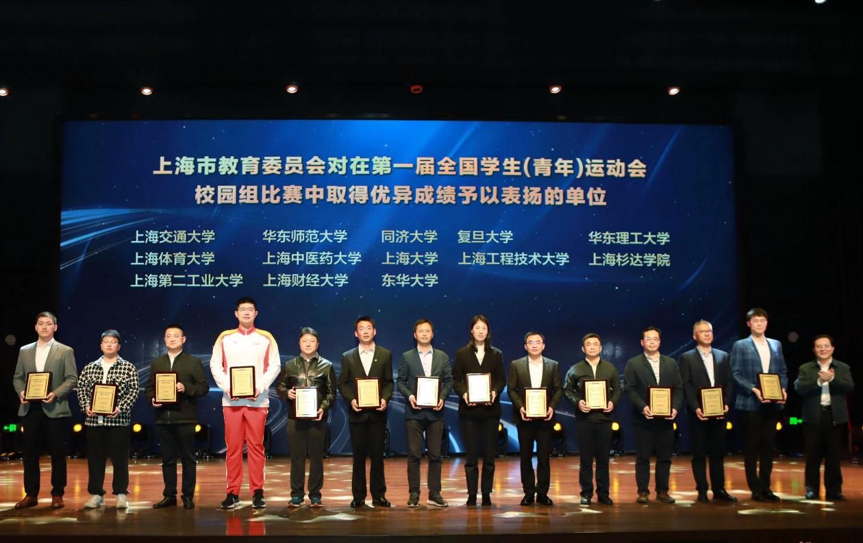 在本次总结活动中,我校被授予第一届全国学生(青年)运动会校园组上海代表团突出贡献一等奖和优秀组织奖,上海市教卫工作党委书记沈炜为我校授牌。