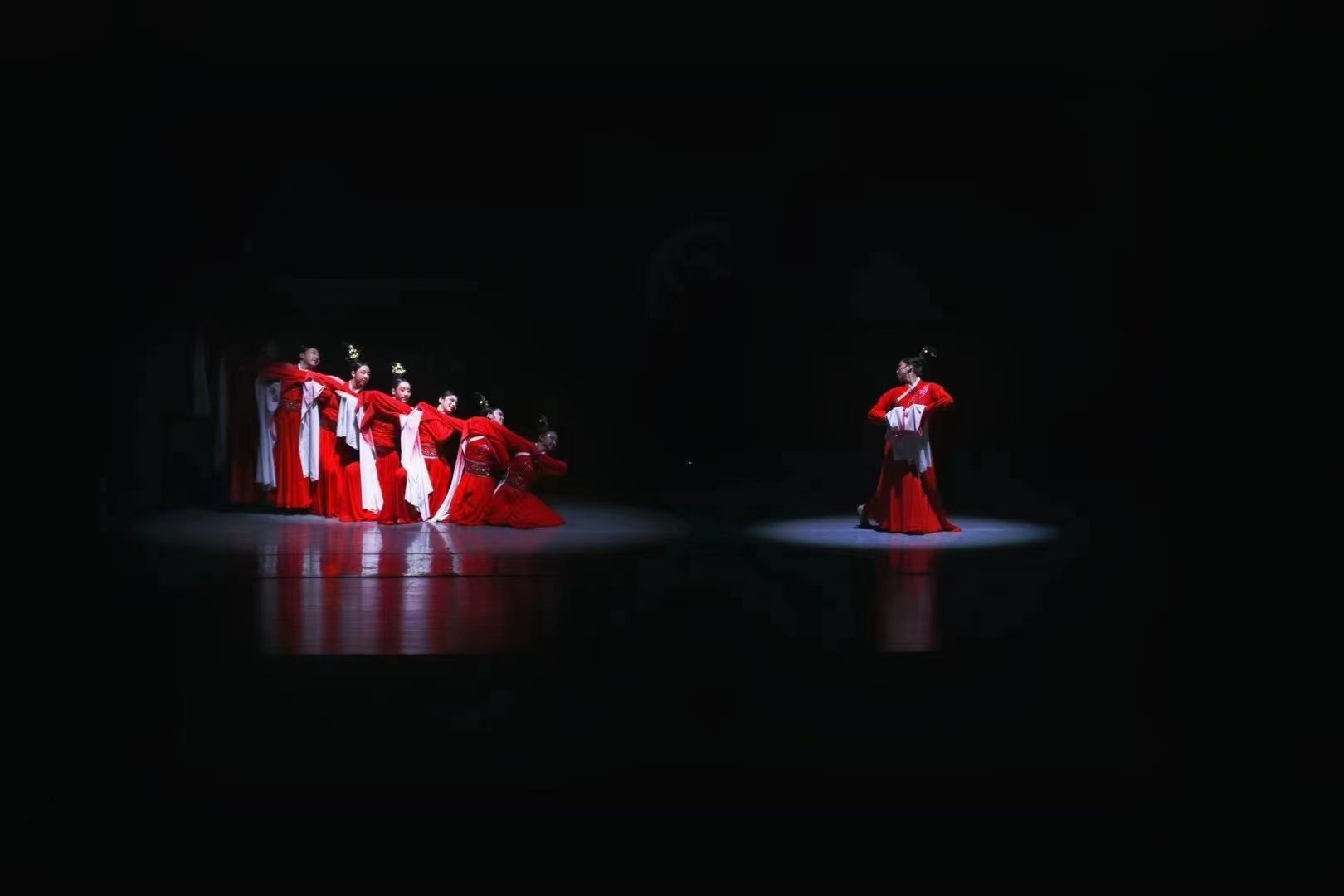 历时八个月的创排打磨细节,我们终于肩并肩走上舞台把《赤练汉唐》呈现给了大家。我非常感谢学校为我们提供了这么好的平台,让我在这次展演中开阔了眼界。感谢我们的老师为了展演加班加点,还有很多帮助我的学姐们,真的给了我很大的力量!无论幕前幕后,聚光灯亮起的那一刹,我想我们都足够热诚勇敢。