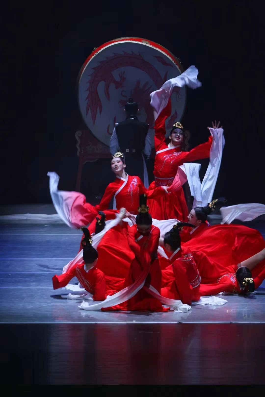 因此,今年4月5日,《赤练汉唐》作为大艺展的优秀作品,受邀参加了第39届上海之春国际音乐节展演。上音歌剧院里,我校学生用舞姿勾勒出一幕幕气壮山河、国富民丰的汉唐景象。这次的动作比起原来更为复杂,同学们为了最终能够完美地诠释这一作品,齐心协力,克服学习和训练的困难,利用夜间、周末各种闲暇时间来进行加练。我们珍惜观众,敬畏舞台,凝心聚力,报以观众最完美的姿态。聚光灯熄灭后,雷鸣般的的掌声便是对我们最高的肯定,所有的辛苦也都在顷刻间烟消云散。