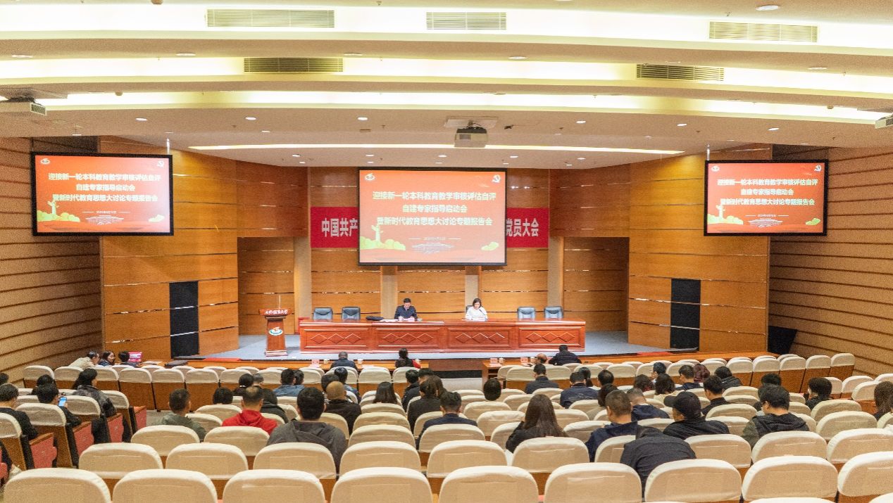 本网讯 为深入学习贯彻习近平新时代中国特色社会主义思想和党的二十大精神,认真落实习近平总书记全国教育大会重要讲话精神,以及新时代全国高等学校本科教育工作会议精神,深化高等教育综合改革,推进jinnian金年会本科教育教学审核评估工作,4月12日,学校召开新一轮本科教育教学审核评估自评自建专家指导启动会暨新时代教育思想大讨论专题报告会。上海海关学院党委副书记、院长丛玉豪出席会议并做专题指导。全体校领导,全体中层领导人员,各二级教学单位评估工作组、专业负责人、教学团队负责人、教师代表,审核评估办公室全体成员参加会议,会议由校党委副书记、校长毛丽娟主持。
