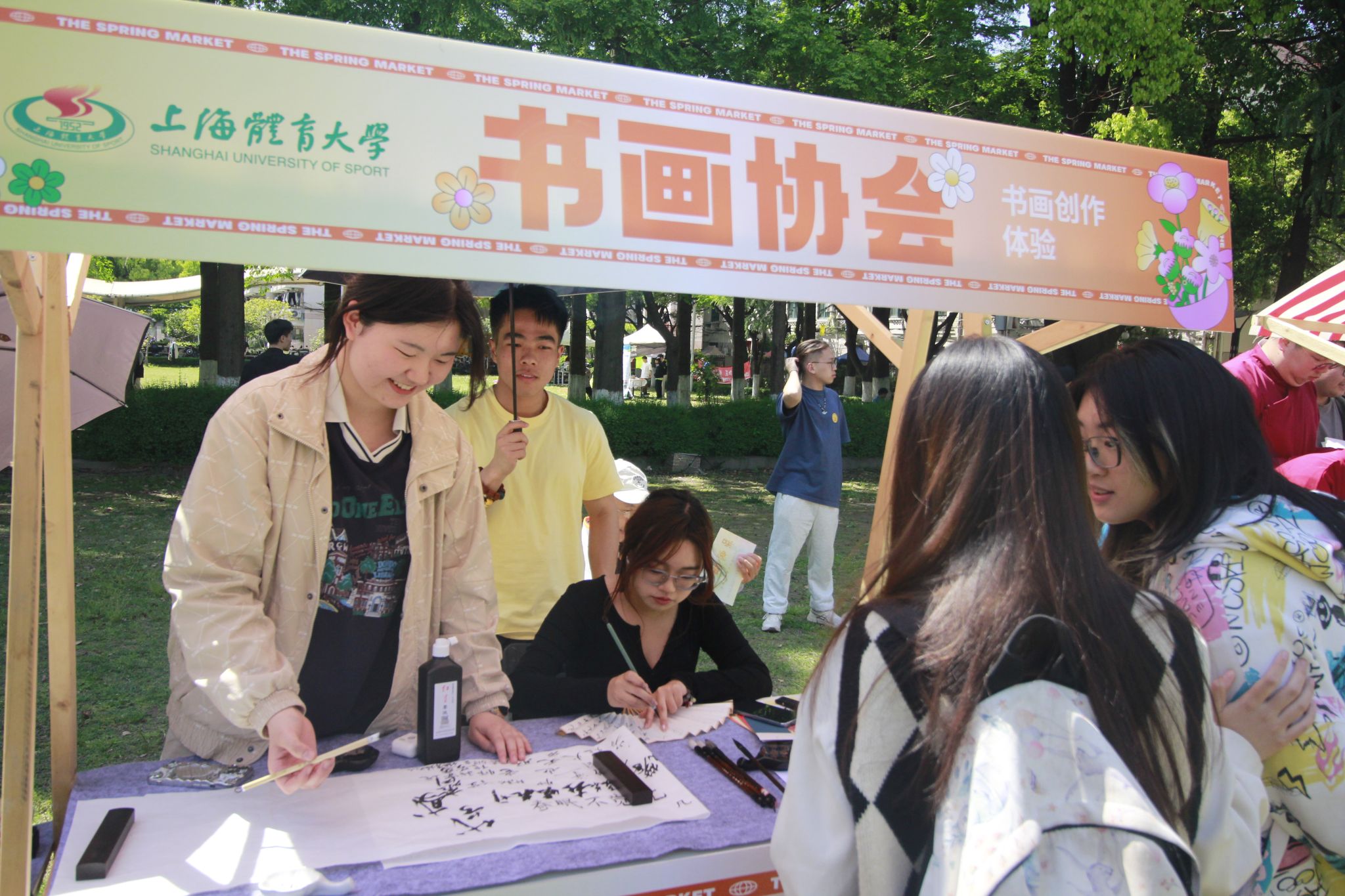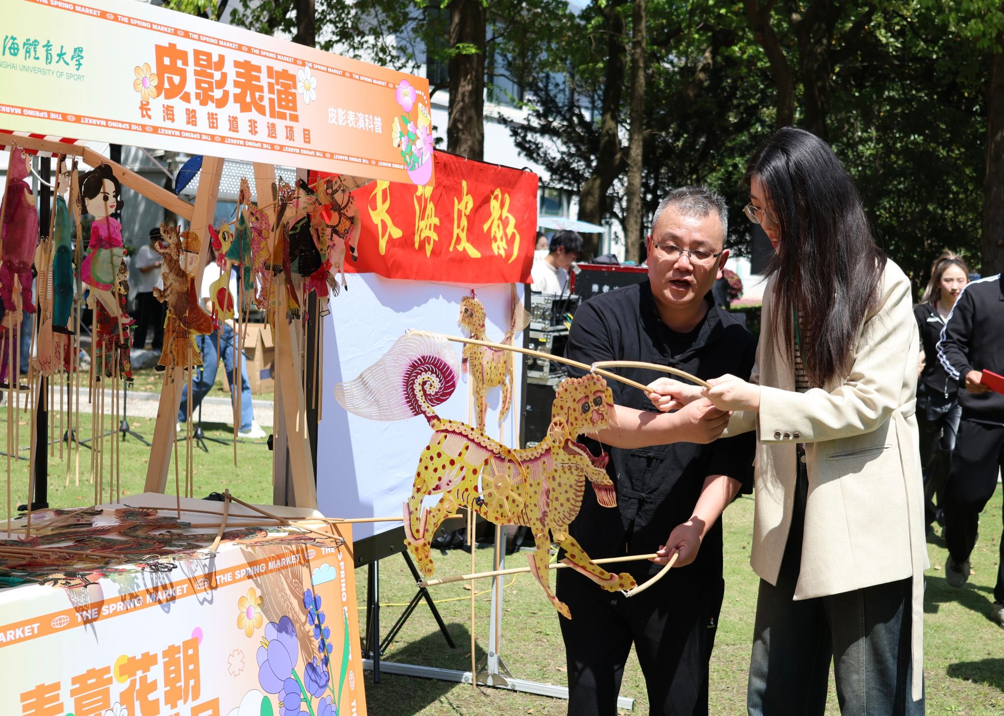 社团游园会有20多个社团精心准备了各类互动活动。校团委邀请了长海路街道非遗工作室“花样经剪纸”和“长海皮影”,上海应用技术大学的汉服社、上海外国语大学的沪语社的同学们与大家互动交流。还有我校体教学院三民工作室的风筝制作、射艺协会的投壶和射箭游戏、围棋社的围棋体验、书画社的书画展示、伊人手工社的鲜花印染等等,吸引了众多同学的积极参与,让同学们在玩的过程中尽情享受传统文化的魅力。