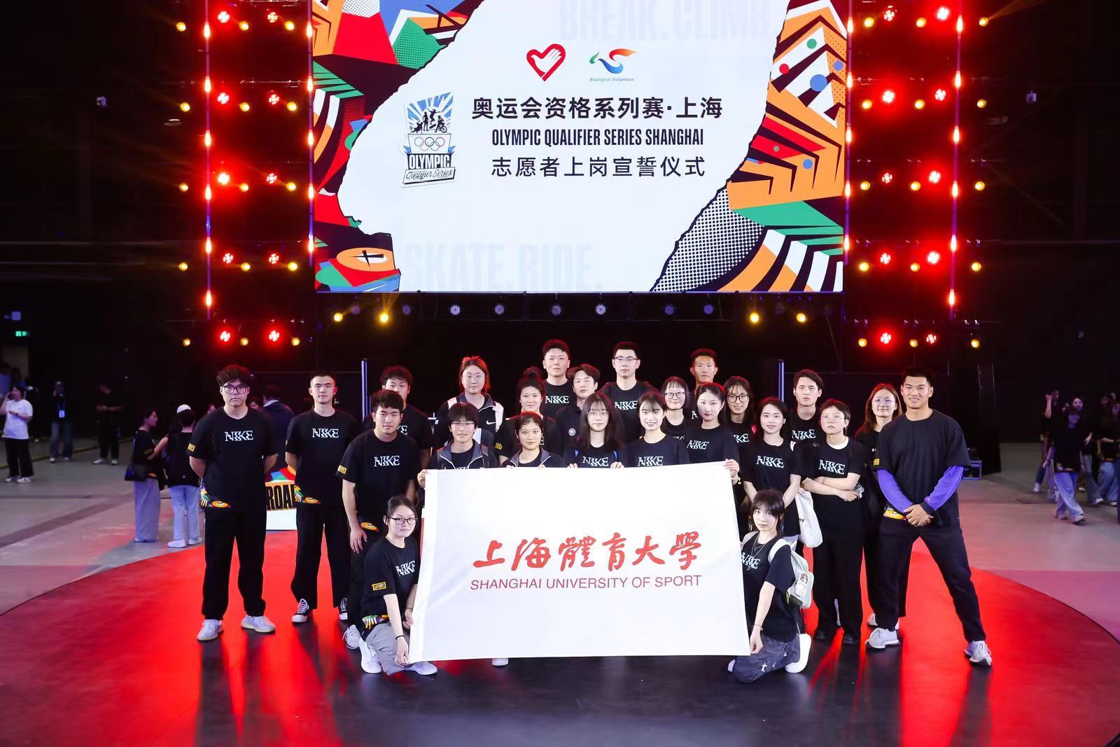 本网讯 5月16日-19日,2024年奥运会资格系列赛·上海将在黄浦滨江举行。距比赛开赛一周之际,5月9日下午,奥运会资格系列赛·上海志愿者志愿者培训暨上岗仪式在外滩国际电竞中心霹雳舞馆举行。我校67名大学生志愿者在带队老师武术学院团委书记刘微微、心理学院团委书记张李兵的带领下参与了本次活动。
