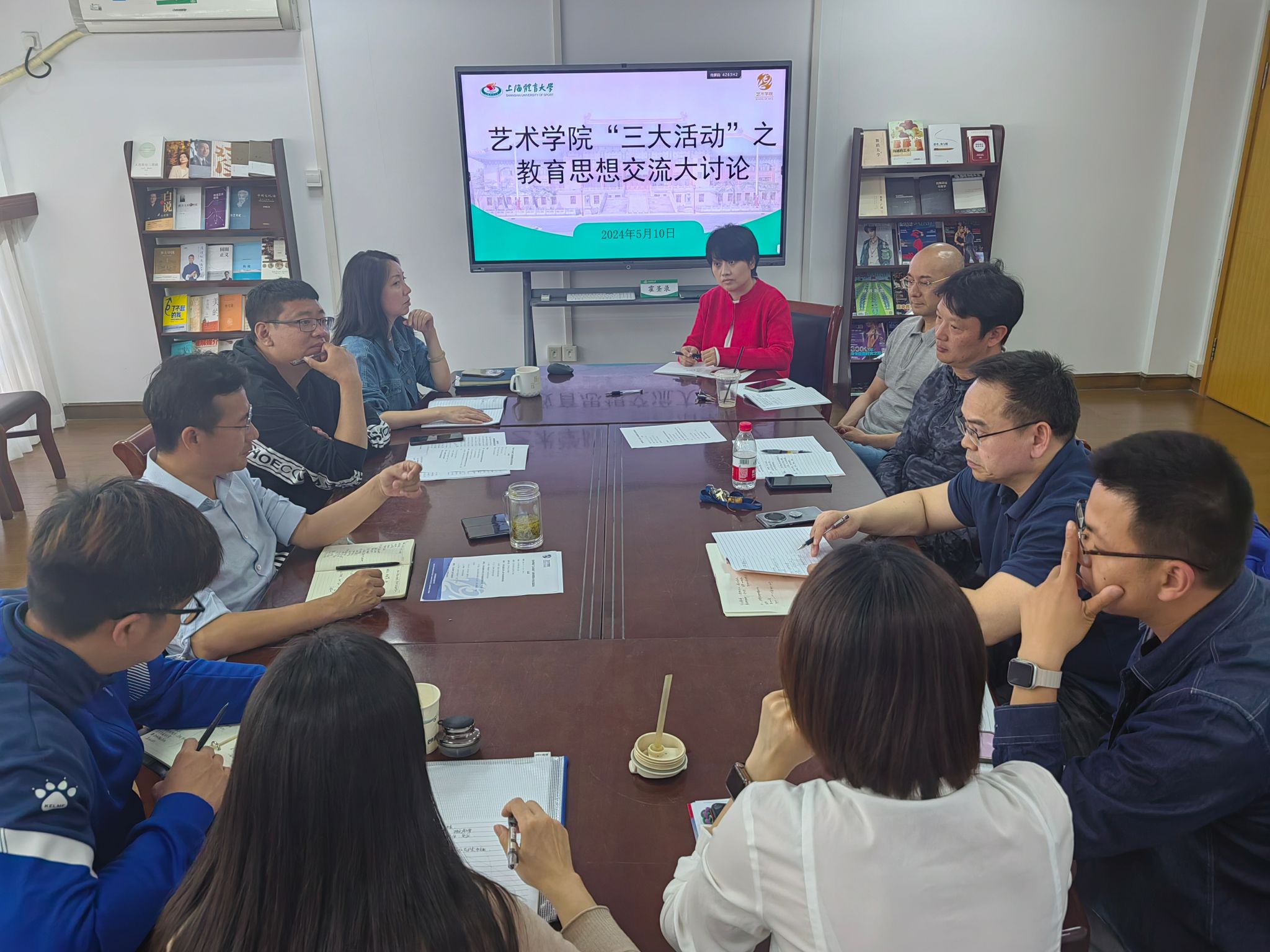 本网讯 5月10号,为进一步落实习近平总书记全国教育大会重要讲话精神,以及新时代全国高等学校本科教育工作会议精神,推进学科专业建设,提升人才培养质量,艺术学院组织开展“三大活动”之教育思想大讨论交流活动。党总支书记霍圣录出席并作讲话,各教学团队负责人以及全体教职工参加会议,会议由党总支组织员原溶主持。