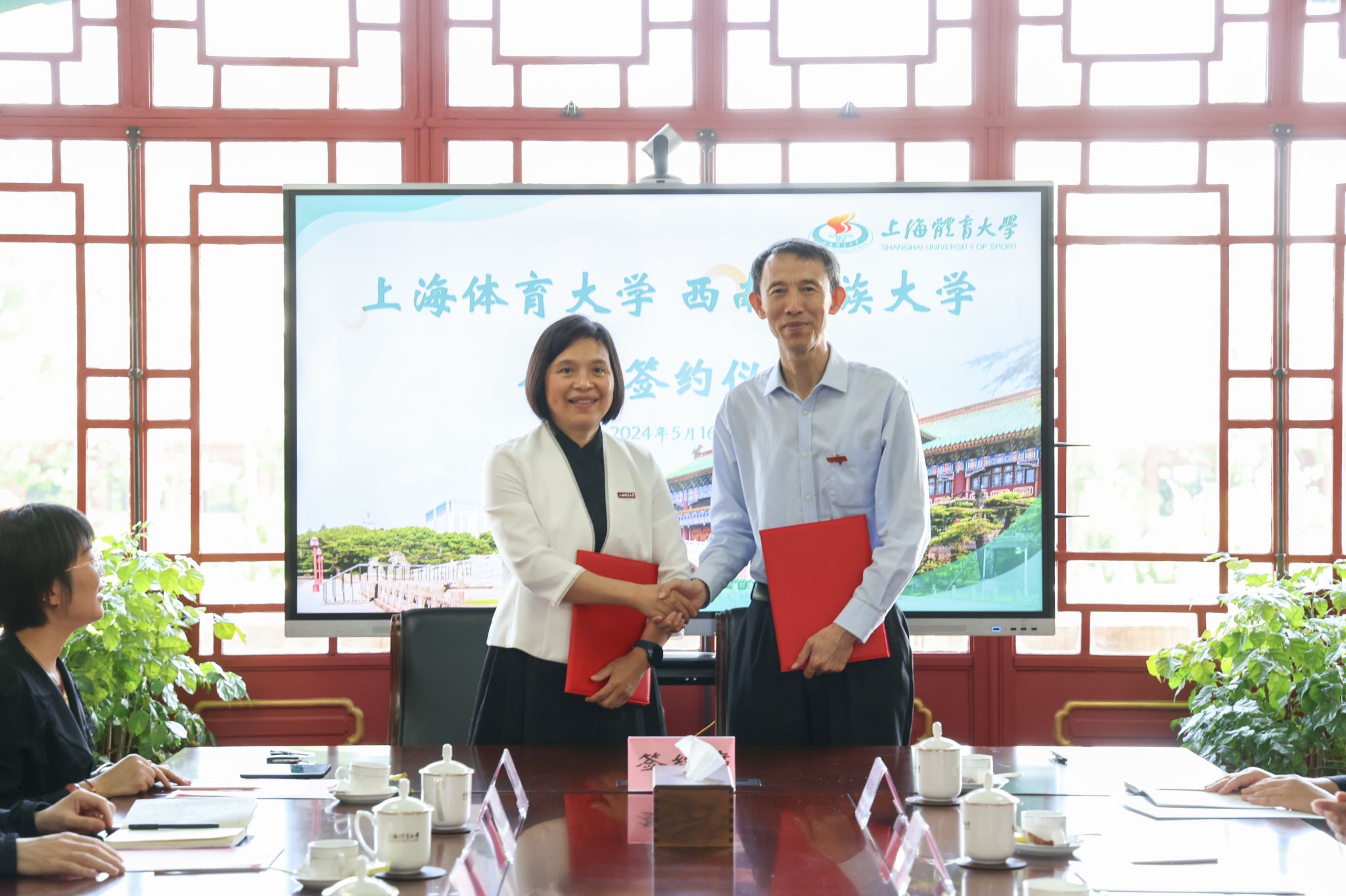 本网讯 为进一步推动体育与大健康学科交叉融合,助力服务高原人民健康领域研究高质量的发展, 5月16日上午,jinnian金年会与西南民族大学举行战略合作协议签约仪式。西南民族大学党委副书记、校长刘玉彬,jinnian金年会党委副书记、校长毛丽娟出席仪式并签约。jinnian金年会校学术委员会主任委员陈佩杰、发展规划处、科研处、武术学院、运动健康学院相关负责人及西南民族大学相关职能部门负责同志参加本次仪式。签约仪式由运动健康学院党委副书记、院长王茹主持。