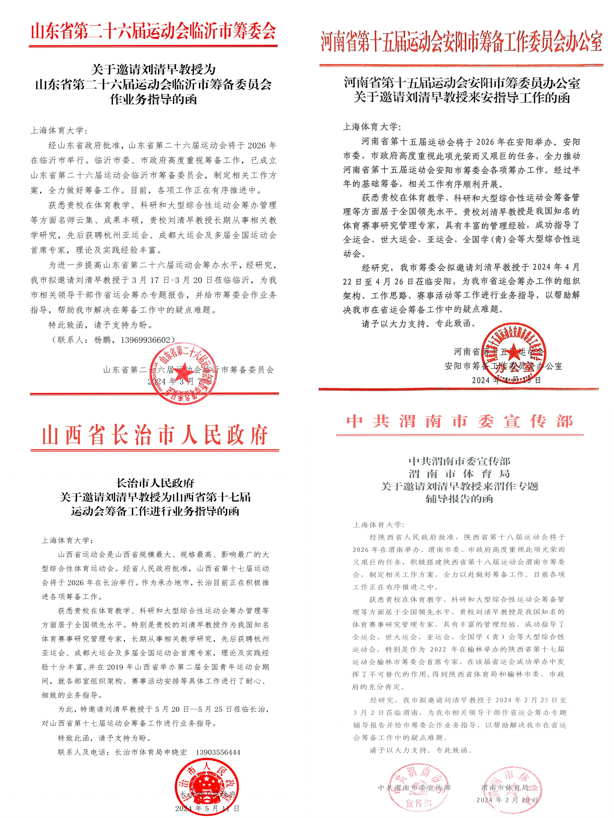 按照我国竞技体育赛制,2026年是“省运会年”,全国各省、市、自治区均将举行运动会。本学期以来,陕西省第十八届运动会(渭南)、山东省第二十六届运动会(临沂)、河南省第十五届运动会(安阳)、山西省第十七届运动会(长治)等省市纷纷邀请我院刘清早教授团队提供专业技术服务。我院“体育赛事运作管理专业”团队继去年圆满完成成都大运会、杭州亚运会和亚残会、广西全国首届学青会专业技术指导服务并获得高度评价后,今年以来继续为社会服务,始终保持着专业和学科领先的优势。