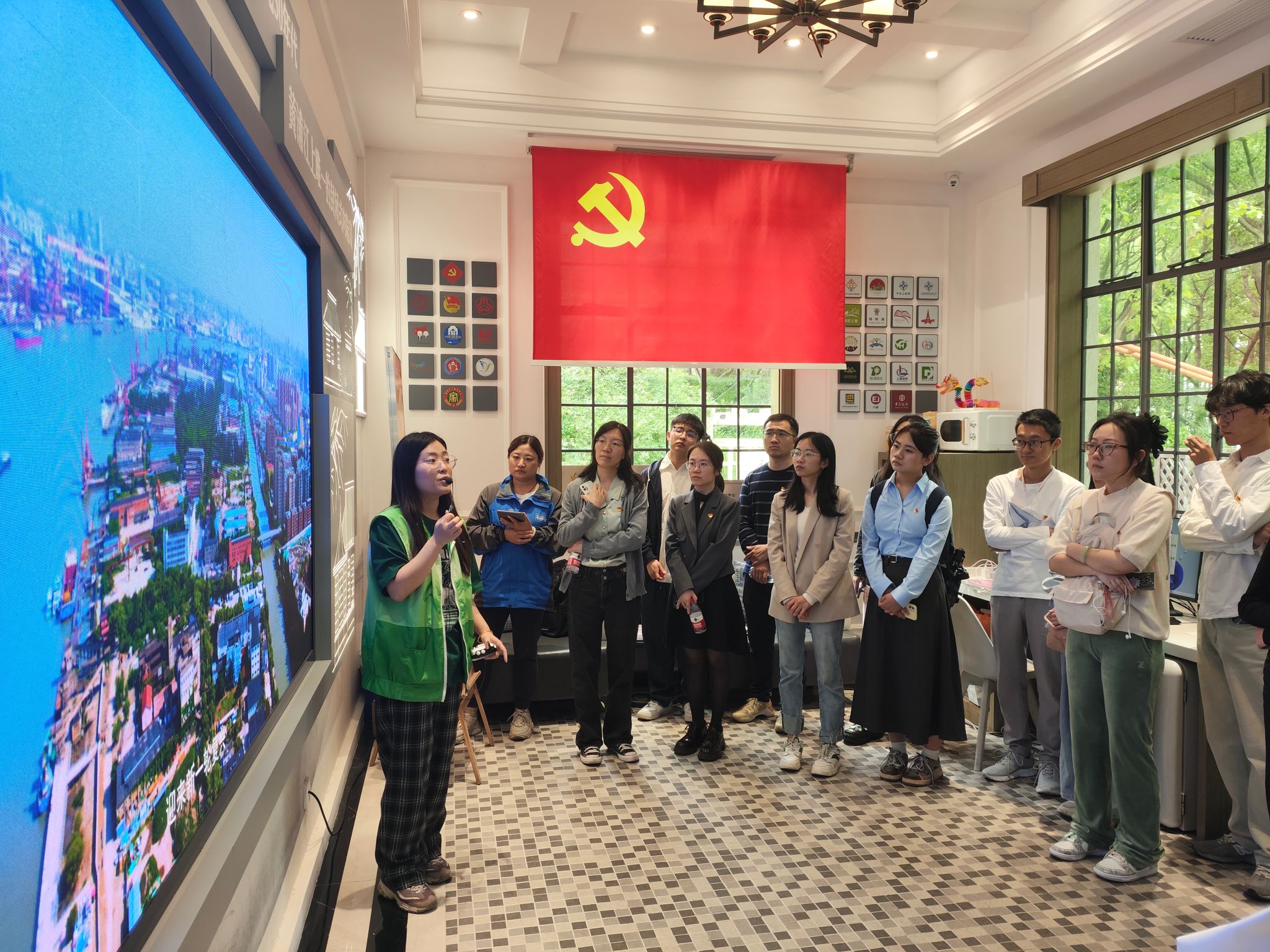 在引导员带领下,大家参观了“浚浦记忆”的历史墙,记载公园沿革的“复兴石”,建造白庐的工程图纸,以及中交上航局历史上立下过赫赫战功的施工船代表船“建设号”、“海龙号”和“新海龙”轮模型。看到了以“公园城市”为主题的浸入式展示,感受到杨浦滨江绿化、生态近些年的变化,体验了从“工业锈带”向“生活秀带”转变的全过程。