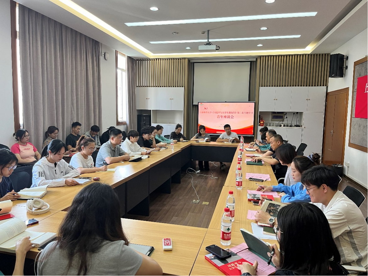 本网讯 为深入学习宣传贯彻习近平总书记五四青年节对全国广大青年寄语精神,5月23日下午,我校《习近平与大学生朋友们》第二卷专题读书会暨青年座谈会在学生活动中心二楼会议室召开。校党委副书记、副校长王继红,学(研)工部副部长韩洪伟,学(研)工部副部长团委书记刘佳瑜,中乒院、各二级学院团委书记,学生骨干代表,青马工程学员代表共同参加了本次活动。座谈会围绕《习近平与大学生朋友们》第二卷,深刻体悟习近平总书记关于青年工作的重要思想,以分享与讨论的方式,展开了深度的学习与思想交流。活动由团委书记、学(研)工部副部长刘佳瑜主持。
