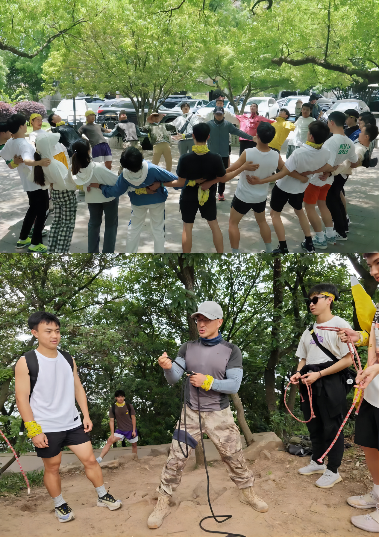 上海游侠客旅行社选派了四位资深领队教官担任此次实训教学工作,并做了充分的准备。21级体育旅游专业的学生分为三组,结合登山过程中的三个阶段,对组内同学进行了前、中、后部领队工作的分工。提前布置了关于服装、鞋帽、背包、食物、饮用水,以及手机软件等的准备工作。在行程过程中,教官分别对户外头巾的多用途使用方法,户外运动软件“两步路”的使用方法,游客登山过程中心率监测和处理的方法,路标带的使用规则,游客在户外摔伤、毒蛇咬伤、中暑等情况发生时的处置方法和技巧,以及两种绳结的方法等做了系统的讲解,每位同学都开展了实践学习。
