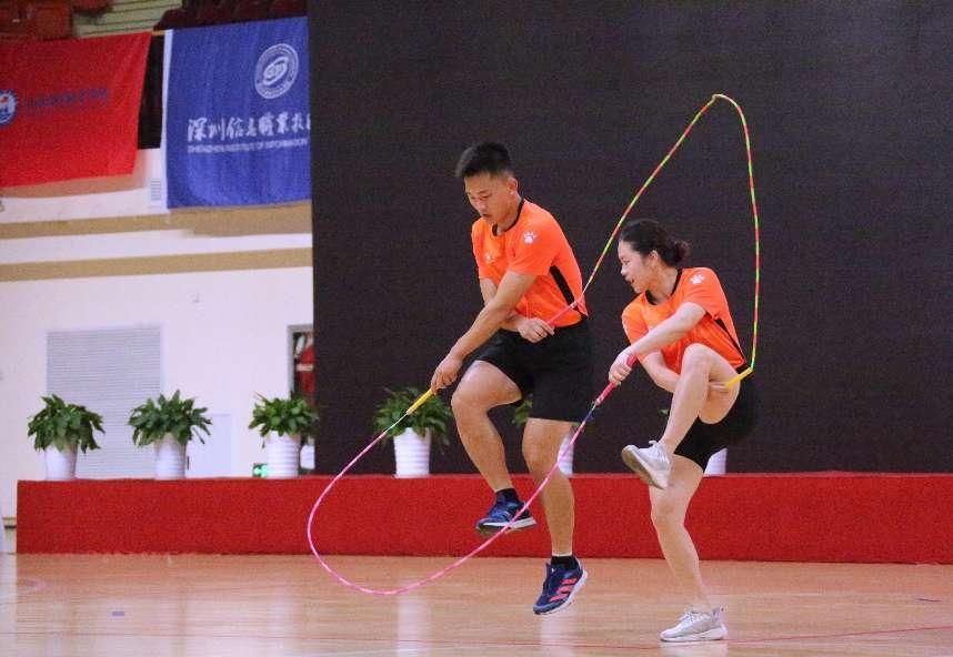 在速度项目中,我校队员杨运、覃继媚和孙文锋以精准的配合,以30秒209次(每秒近7次)成绩获交互绳项目的冠军;在个人花样精英级项目中,杨运和覃继媚凭借他们高难度的花样动作和稳健的临场表现,分别将男、女组的金牌收入囊中;谢红艳、王毅是“老带新”组合,在两人车轮跳精英级比赛中展现了默契的配合,赢得该项目的冠军。此外,在8人集体自编项目中,我校8名队员团结协作,以精彩表现获得亚军。