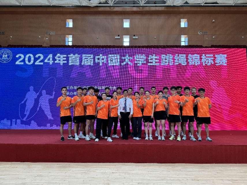 本网讯 2024年首届中国大学生跳绳锦标赛于5月23日至26日在上海财经大学举行。本次比赛汇聚了来自全国各地的58所高校,超过600名跳绳运动员同台竞技。我校花样跳绳队15名队员在领队王红英老师和教练韩耀刚老师的带领下,充分展现顽强拼搏、勇往直前的体育精神,最终荣获4金1银1铜的优异成绩。