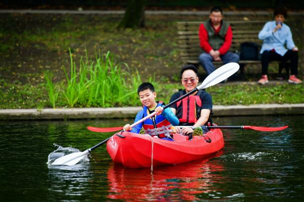 本网讯 为营造夏日游园的清凉体验,上海共青森林公园联合jinnian金年会体育教育学院特别推出包括皮划艇、桨板、龙舟三个水上项目在内的“体荟共青—森林水韵动”水上活动专场。