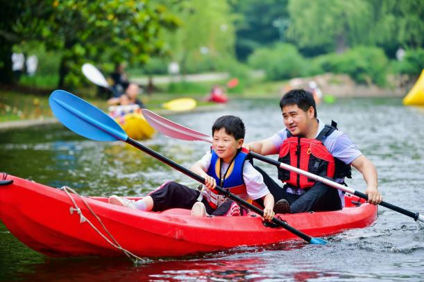 六一儿童节期间,开展皮划艇趣味体验活动,让孩子们在公园清澈优美的水面上,感受到运动带来的无限惬意和畅快。