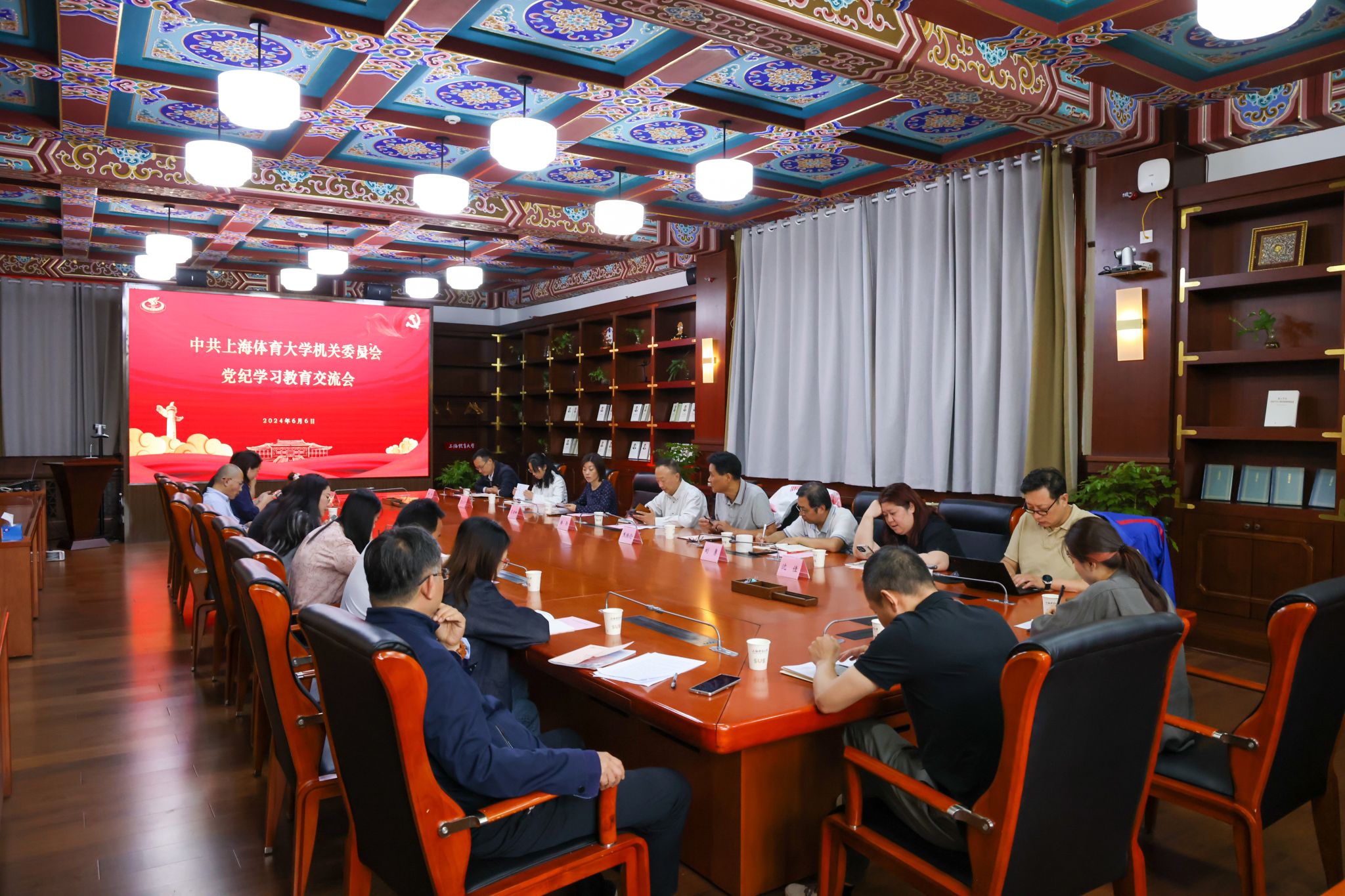 本网讯 6月6日上午,机关党委在绿瓦第四会议室召开党纪学习教育专题学习交流会。校党委副书记潘勤出席,机关党委委员、机关党支部书记以及党员代表参加,会议由机关党委书记焦振伦主持。