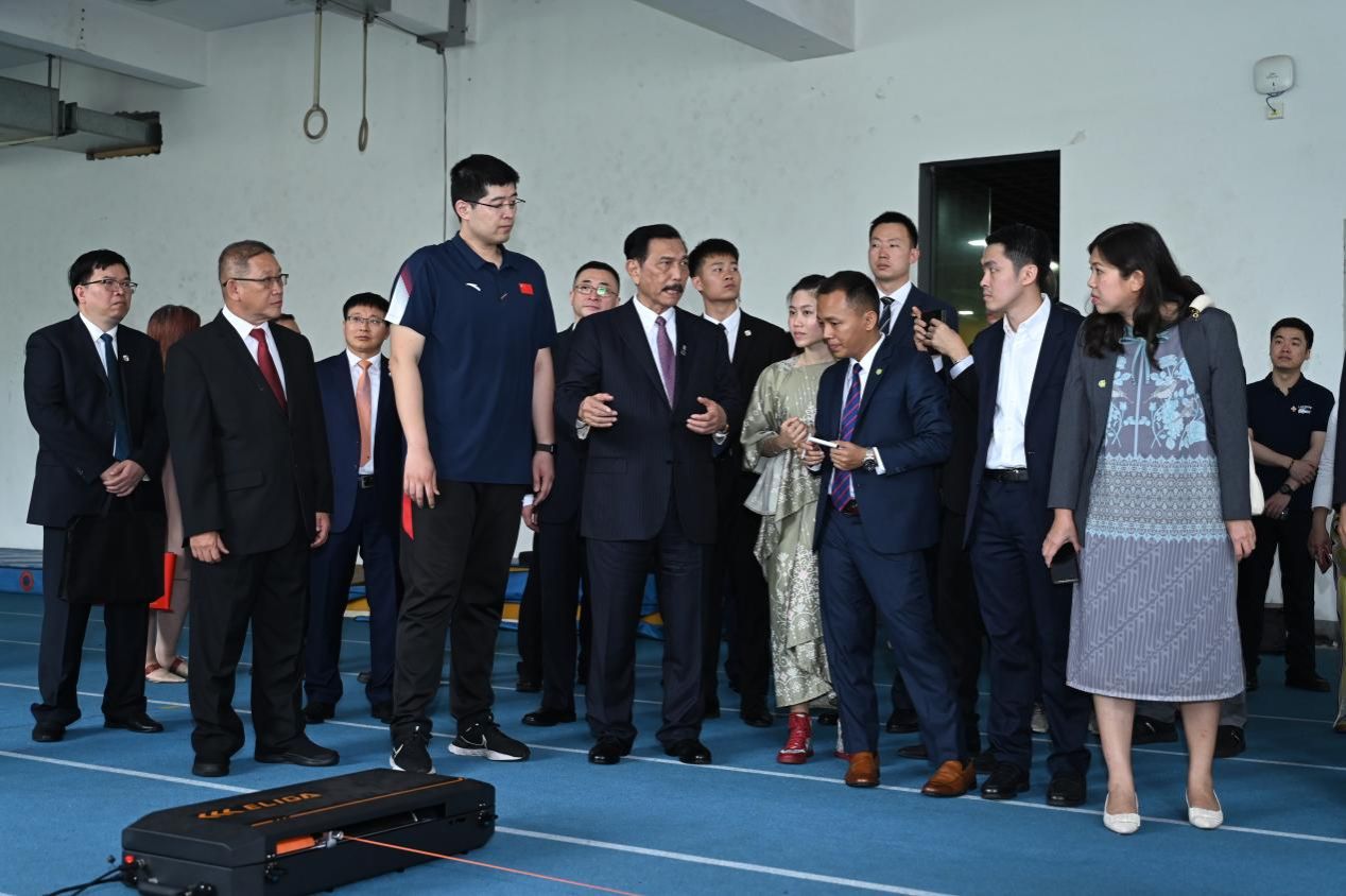 卢胡特在参观时认真听取介绍,驻足观看数字化体能训练、田径运动生物力学分析和速度训练,并与陪同人员亲切交谈,对我校在体育领域取得的成果表示赞许。卢胡特高度重视印尼田径等体育运动发展,积极推动两国体育合作,促进人员友好往来。
