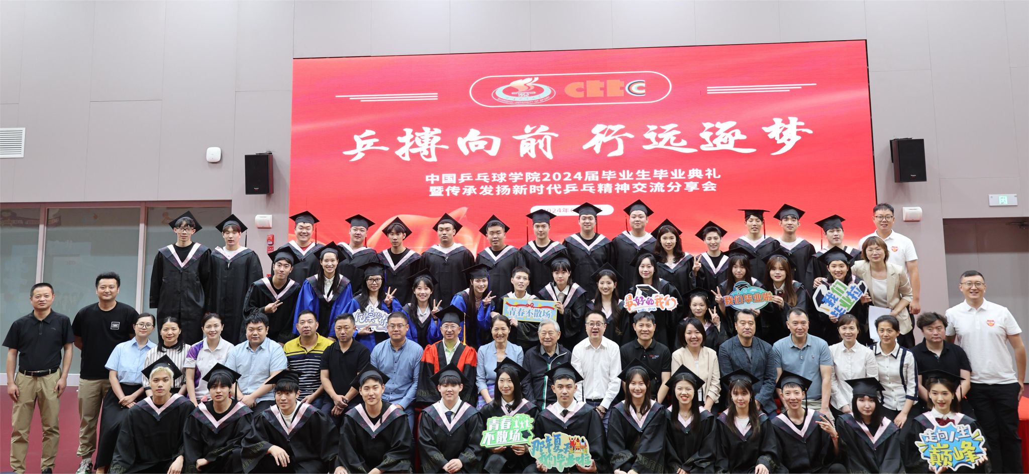 伴随着《夜空中最亮的星》的合唱声在回荡,毕业典礼在师生们温馨的合影中圆满落幕。在上体中乒院的岁月点滴将成为同学们未来追梦旅程中不可或缺的坚实基石。奋进新时代, “乒”搏新征程,祝愿全体中乒院2024届毕业生前程似锦!