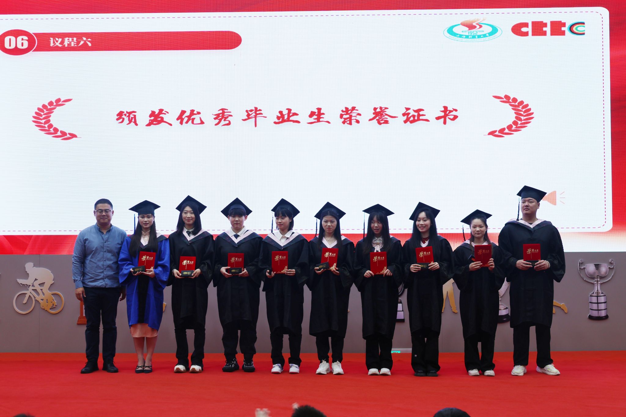 张海波、李祯分别为获得市级、校级优秀毕业生殊荣的中乒院学子颁发荣誉证书。这不仅是荣誉的象征,也是激励的源泉,毕业生们将承载着祝福与支持,满怀信心地踏上新的征程。