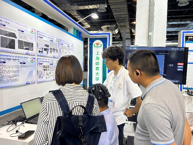 我校展示的科技成果涉及运动生物力学、运动技能测评、运动康复、运动训练和运动场馆管理等领域,充分体现我校在推进体医、体教、体工和体管融合等体育交叉学科中的丰硕创新成果。来自竞技运动学院王然教授的项目“运动能力评估测力台”和心理学院陆颖之教授“提升雪上技巧运动员动作控制大脑神经效率的技术应用”受到广大专业观众的关注,吸引多家企业和投资机构代表前来洽谈交流。