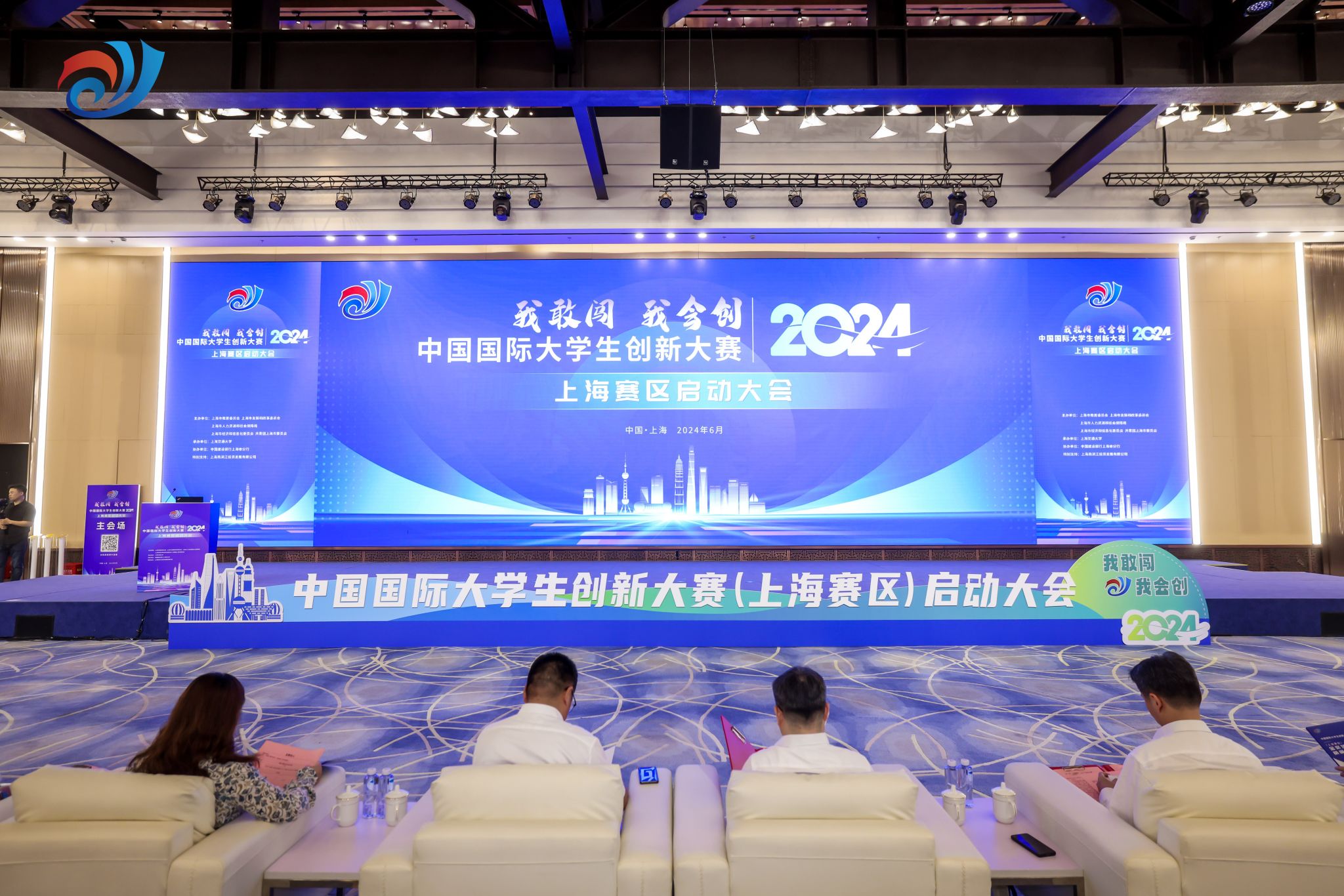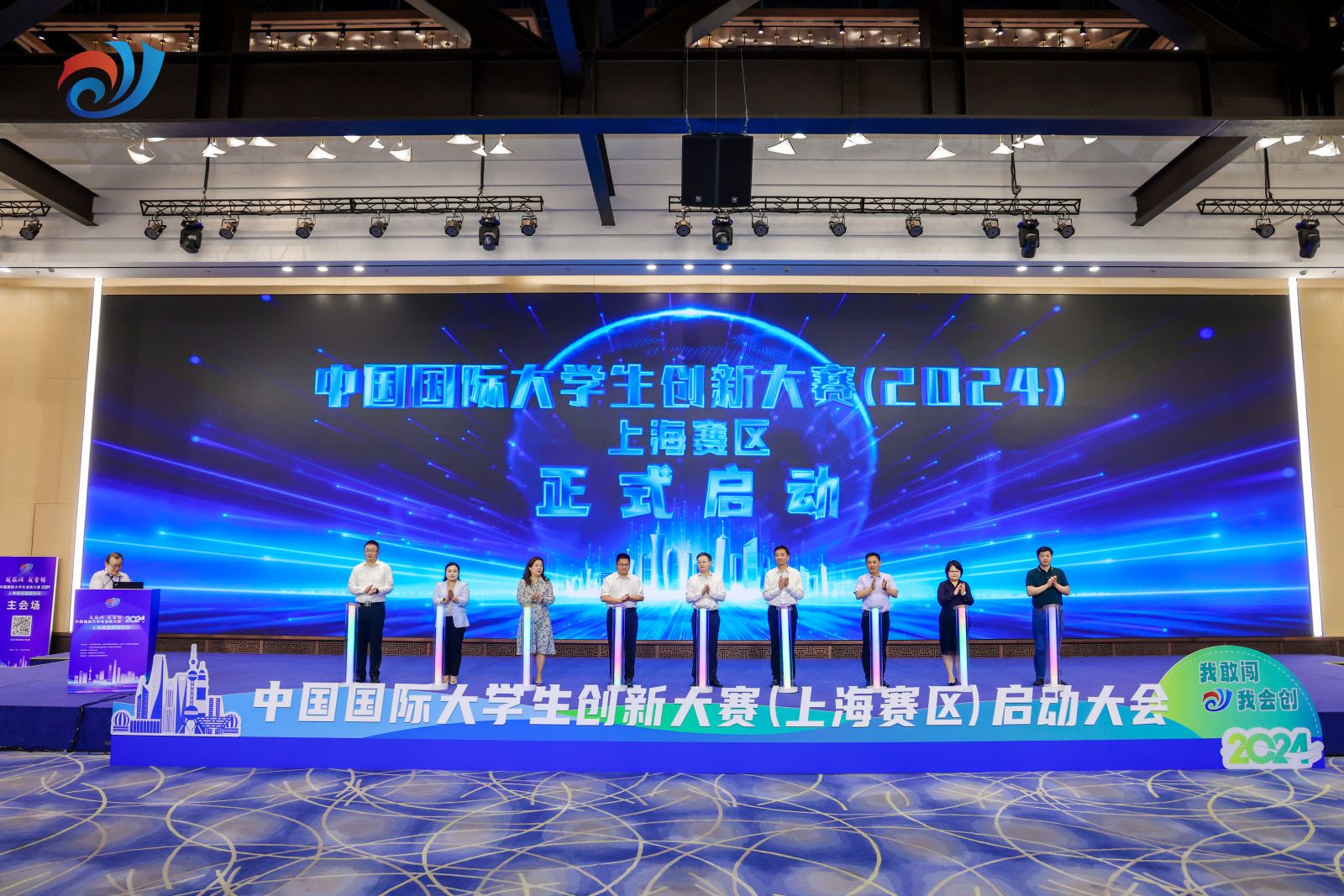 本网讯 6月13日下午,2024年中国国际大学生创新大赛上海赛区启动会在大零号湾科创大厦会议中心隆重举行。jinnian金年会党委副书记、副校长王继红,创新创业学院副院长陈伟以及2023年两个市赛金奖项目《“AI+武术”智能化评分设备——蓝璃科技·武术智能评测先行者》《“康态义栈”——做青少年体态矫正的领航者》学生团队代表参加了启动会。