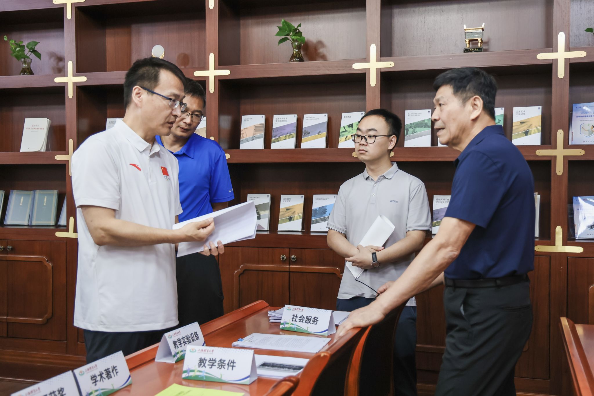 本网讯 6月17日,由钟秉枢教授为组长,张瑞林教授、刘江南教授、中国足球协会副主席许基仁等为成员的国家体育总局专家组一行赴我校开展国家示范足球学院评审工作。校党委书记李崟,党委副书记、校长毛丽娟,党委副书记杨玲,副校长唐炎及相关职能部门负责人参加评审汇报会。
