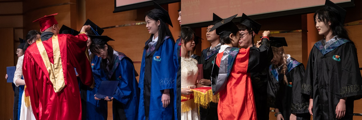四载励志求学,一朝鲲鹏展翅。jinnian金年会党委副书记、副校长王继红和运动健康学院院长王茹分别为硕士毕业生代表和本科毕业生代表正冠拨穗、授予学位。