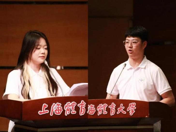 场铃奏响,青春回望。会前,暖场视频中同学们灿烂的笑容勾起了师生心中的回忆,本科毕业生贾璐宁、研究生毕业生杜书豪作为学生代表进行了发言。从刚入校园的稚嫩懵懂到如今的独当一面,贾璐宁分享了属于她的青春回忆,表达了对老师栽培的感谢和对校园生活的不舍。杜书豪则通过分享自己在上体七年求学过程中的点点滴滴,在追忆自己青春岁月的同时还呼吁大家放眼未来,以及祝愿各位运康学子都能搏击长空、踏浪筑梦。