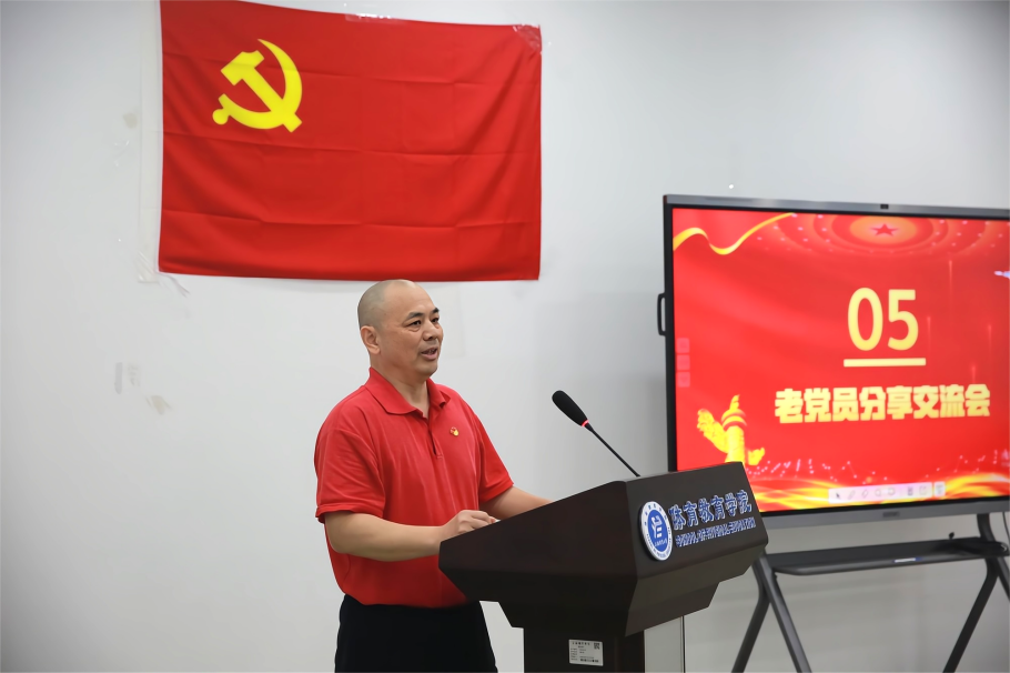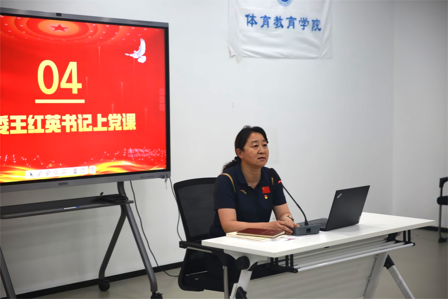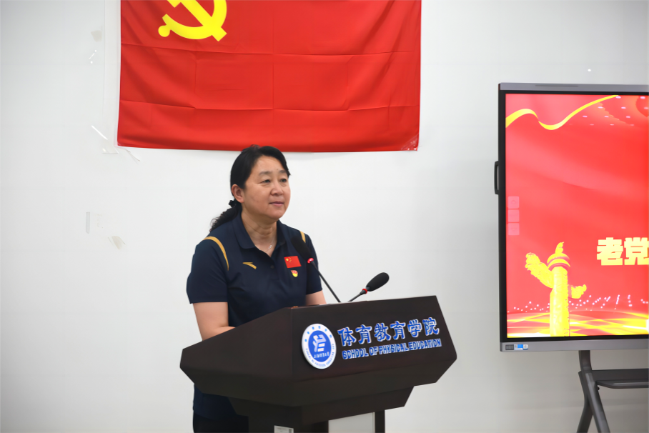 王红英书记进行了讲话,王书记指出,听了两位老党员的感受深切,提出了六字箴言:“旗帜”“传承”“发扬”。她说到:老党员是我们体育教育学院的旗帜,老党员的党性修养需要一代一代的传承,新党员则要发扬优秀党员的作用,为社会、为党、为国家做出贡献。