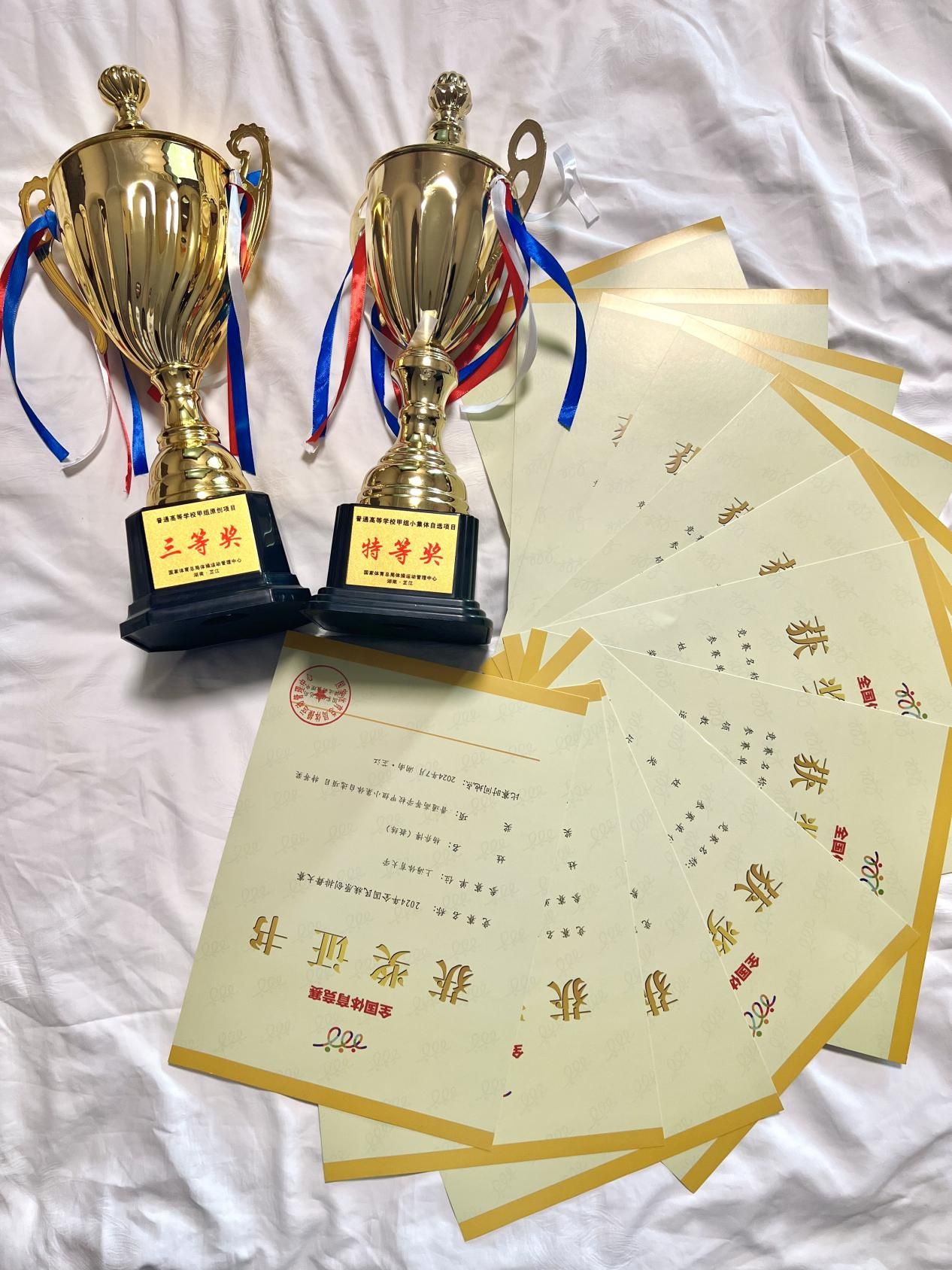 我校排舞代表队在本次比赛中表现优异,取得了优异成绩。代表队由体育教育学院党委书记王红英领队,教练员杨乔博和陆莉萍老师指导,随队调研杨小凤老师带队,共有6名学生参加比赛,其中包括2名研究生和4名本科生。经过精心准备和艰苦训练,我校排舞代表队在普通高等学校甲组自选项目中荣获特等奖,在普通高等学校甲组原创项目中荣获三等奖,为学校争得了荣誉。