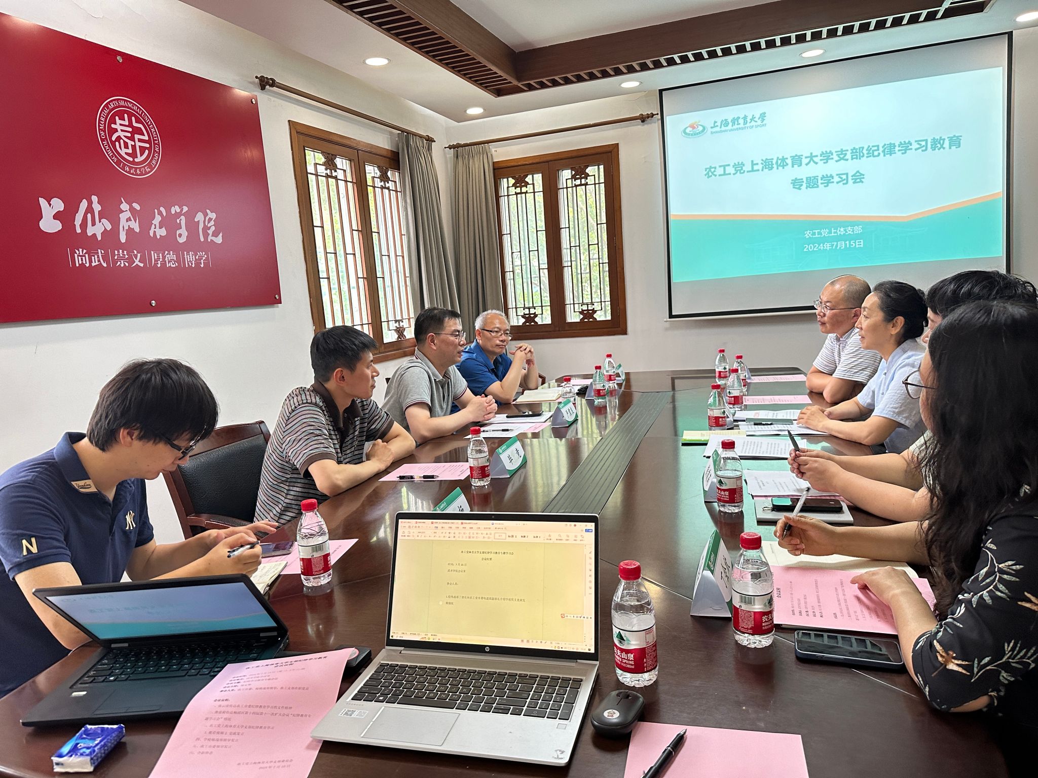 本网讯 7月15日,农工党jinnian金年会支部召开“纪律学习教育”专题会。农工党上海市委组织部副部长严君良、支部联络员毕竟莅临指导。校党委统战部副部长丁志刚、农工党支部主委张云崖、副主委熊前莉及支部在职党员参加了此次专题会,会议由支部宣传委员邹文华主持。
