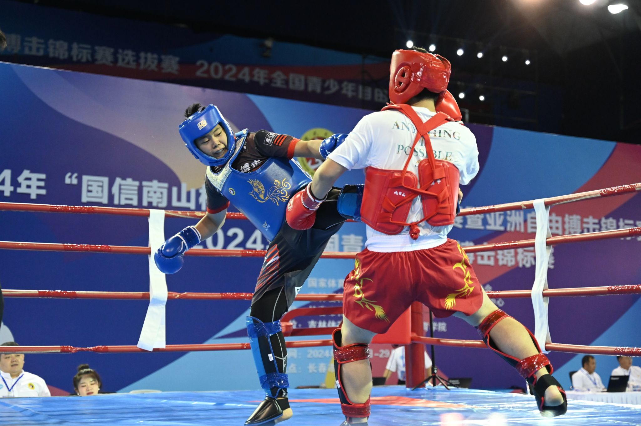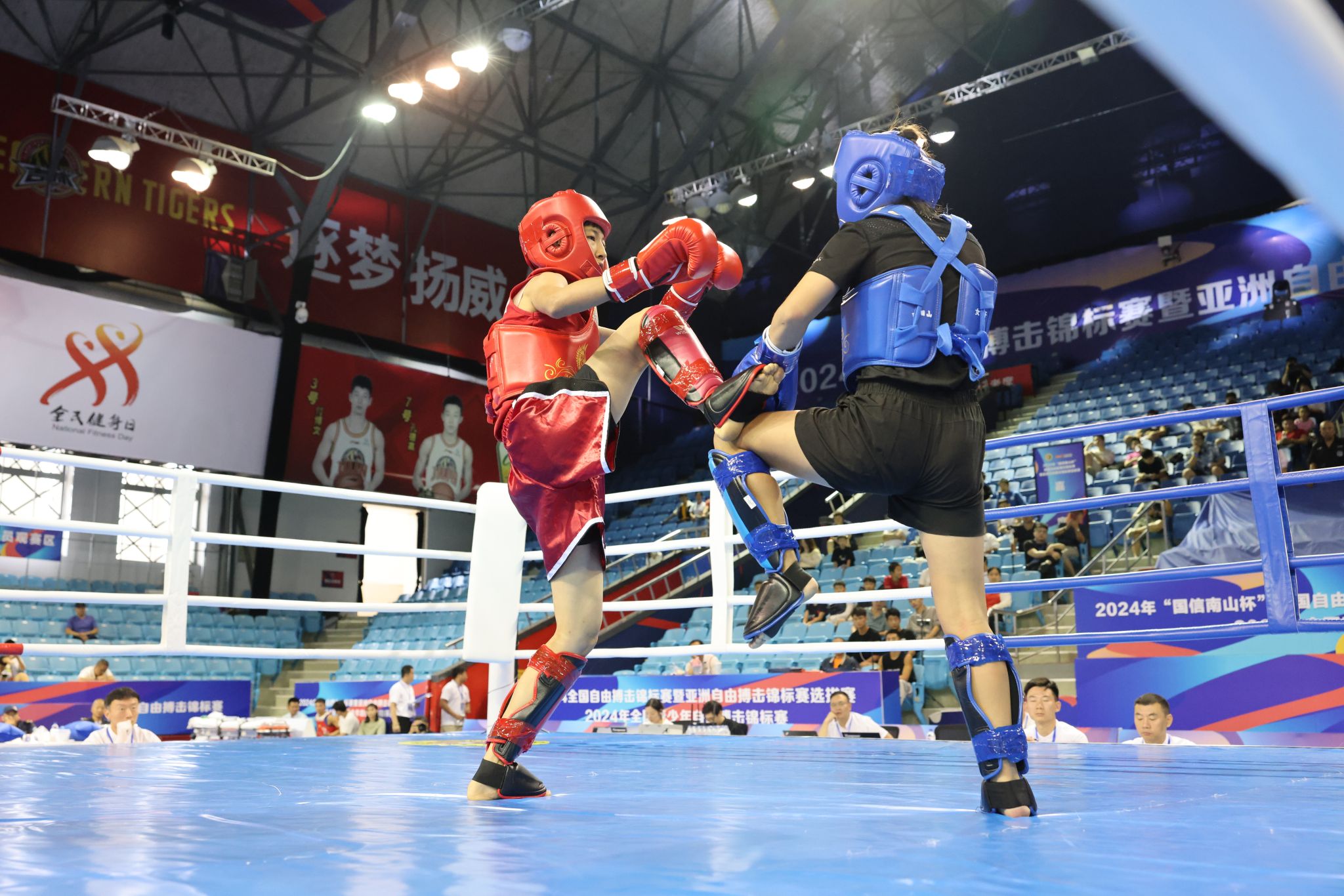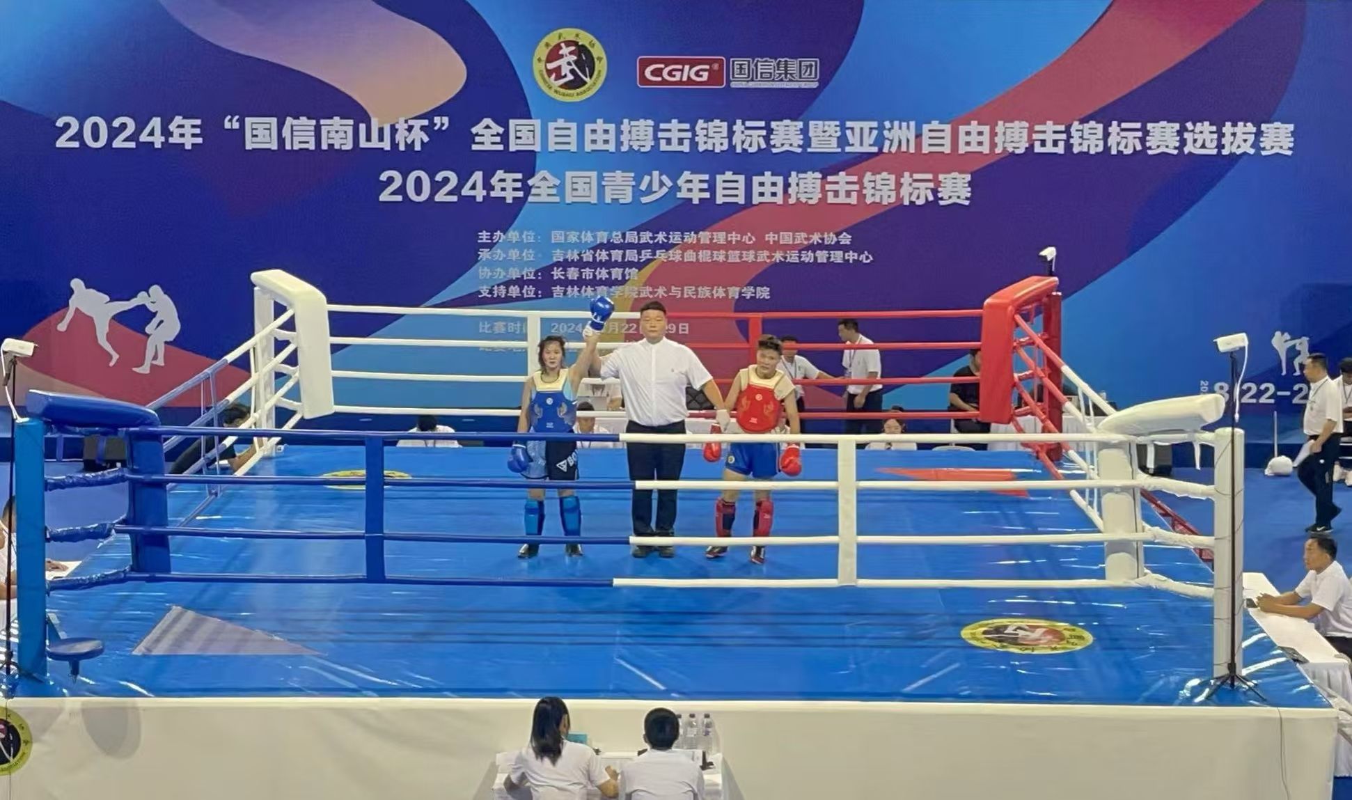 本网讯 2024年8月22日至29日,由国家体育总局武术运动管理中心、中国武术协会主办的2024年“国信南山杯”全国自由搏击锦标赛暨亚洲自由搏击锦标赛选拔赛在吉林长春市隆重举行。本次赛事吸引了来自全国57支代表队的350余名自由搏击运动健儿齐聚一堂,共同展示自由搏击技能,弘扬搏击体育精神。