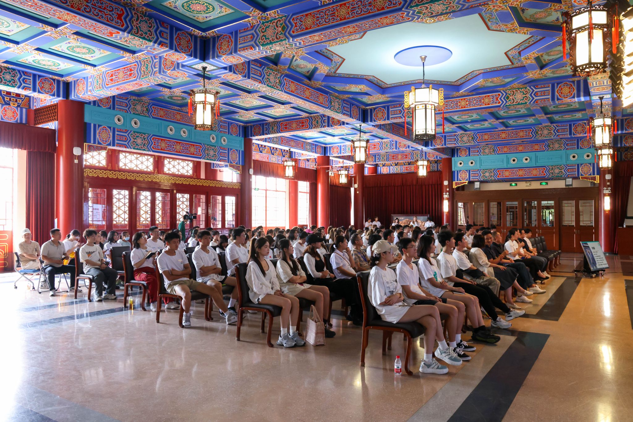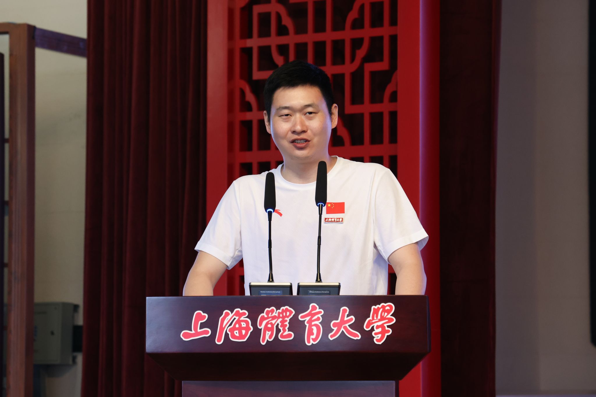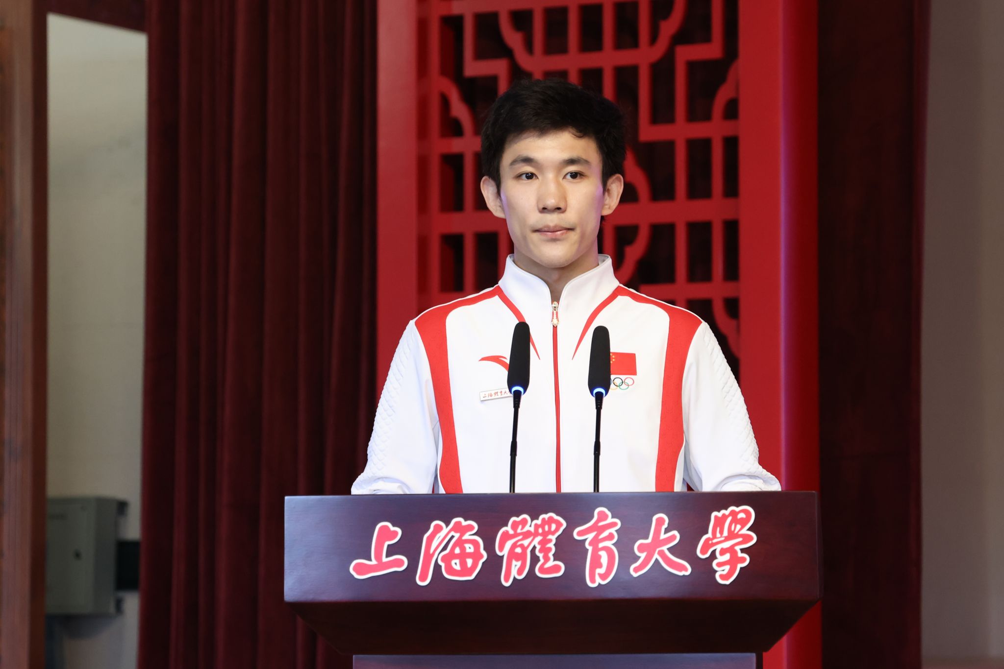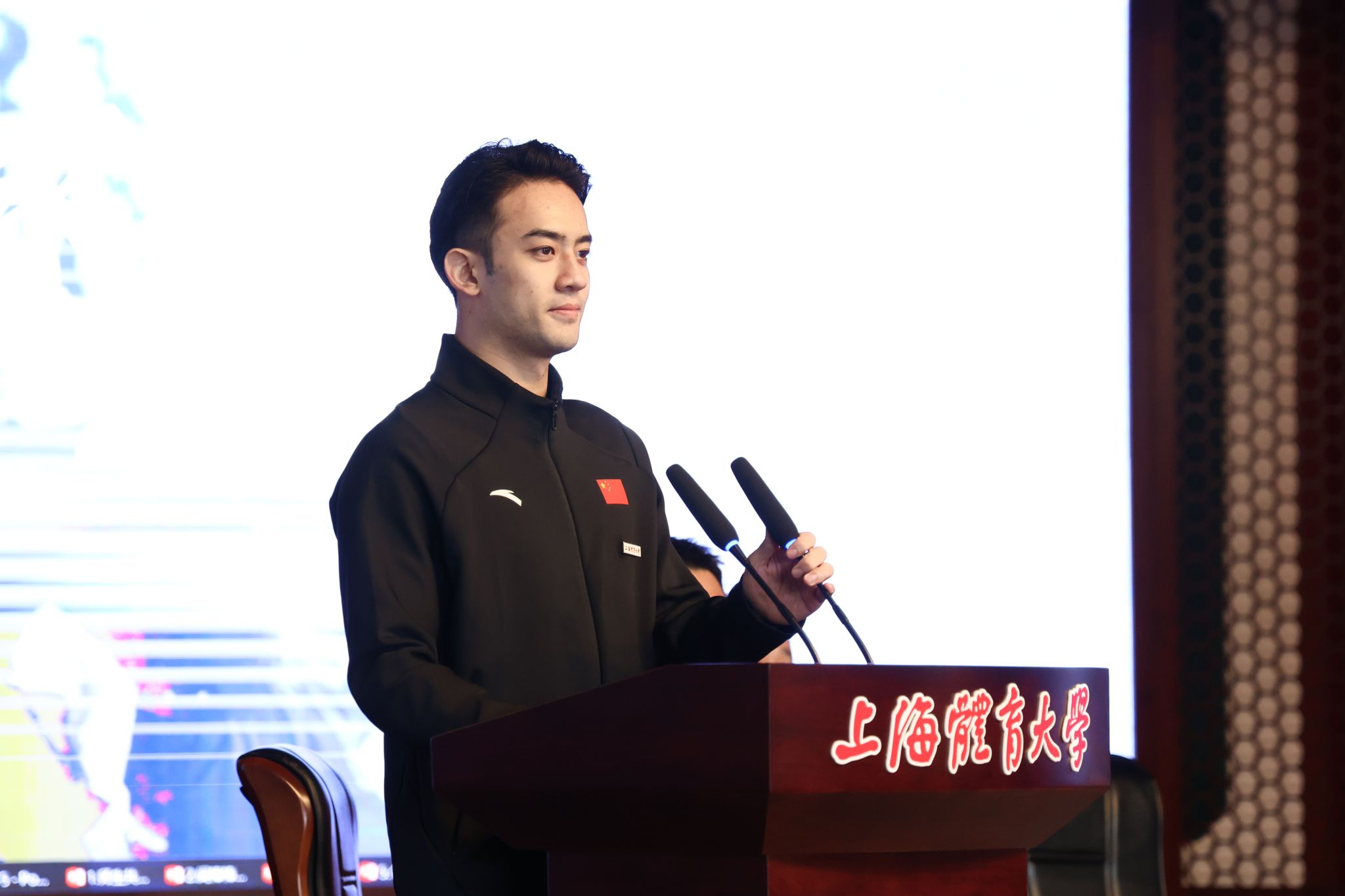 本网讯 9月5日上午,就在2024级新生报到的当日,“五星、五环、五情”以体育人主题教育之冠军思政课在绿瓦大礼堂顺利举办。本次活动以“青春奋斗路,竞攀新时代”为主题,特别邀请了五位体育界杰出代表与校领导共同授课。巴黎奥运会男子双人10米台跳水冠军杨昊,WDSF世界大奖赛拉丁舞冠军、亚洲拉丁舞冠军阎棒棒,世界跳绳锦标赛冠军队伍教练、跳绳国际级裁判韩耀刚,中国篮协CBA/WCBA官方数据分析工作组组长张铭鑫,上体-百度飞桨智慧体育技术创新中心研究员卢飞翔结合自身经历用生动的故事和深刻的感悟,为师生们带来了新学期首堂思政课。